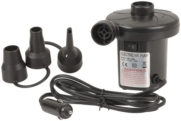 This 12 volt ait pump is designed for fast high flow inflation of low pressure inflatables such as camping air matresses, inflatable boats and pool toys. It simply plugs into any standard 12 volt vehicle outlet and includes 3 outlet nozzles to suit different valve sizes. The pump can also be reversed to quickly deflate your air matress. Features: 12 Volt Cigarette Plug 1.2 Metre power lead Includes 3x nozzles (MWA616)
