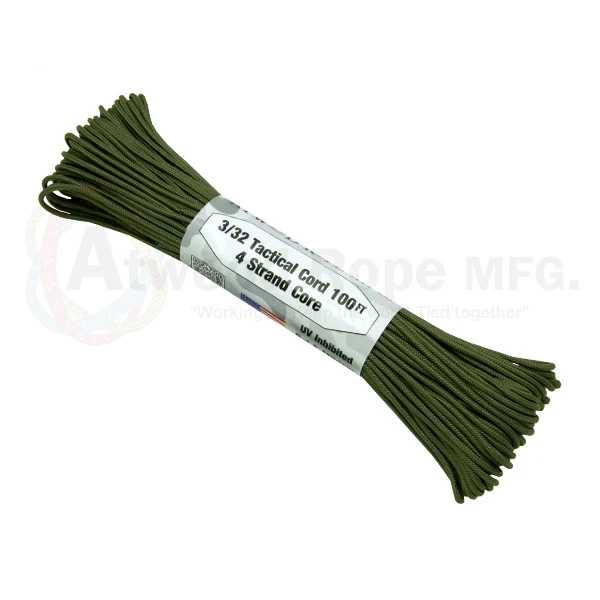 275 Cord – 3/32 Tactical 4 Strand core + sheath (5 Lines in one) Ultralight compact tactical cord UV Resistant Flexible Ties Well 275 Tactical Cord is 550 Paracord’s little Brother ( Half Size ) at 275 LBS Test. Its a must have for all outdoor and survival enthusiasts, as this rope has almost endless uses and qualities. Great for camping, backpacking, military, survival kits / bug out bags, ETC. Ideal for detailed use where 550 paracord is too thick and stiff where a more flexible and thinner cord is ideal. 100ft can be turned into hundreds. By pulling out the 4 inner strands, you can use them as individual cords. Specifications: Colour: OD Green Purpose/Use: Tactical Rope Diameter – 3/32″ / 2.4mm Tensile Strength – 275 lbs / 125 kg Weight (oz/100ft) – 4.8oz / 136g Material – Polyester / Nylon 4 Strand Core Color Will not run or bleed UV & Rot Resistant Made In The USA (TS14-OD)