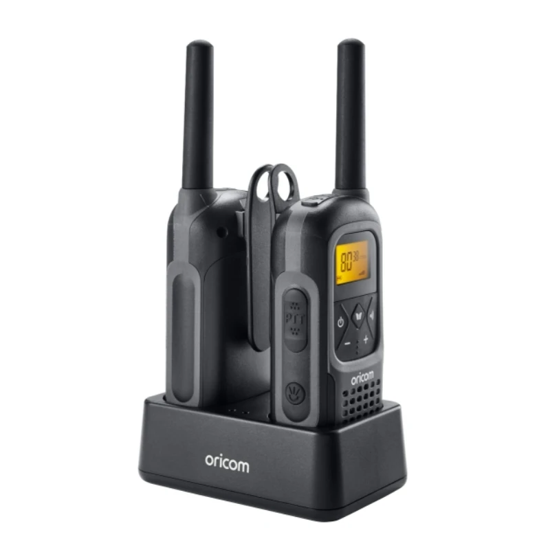 Oricom UHF2500 2 watt Waterproof Handheld UHF CB Radio Single Pack Rated waterproof to IPX7 and including a float and flash feature, this handheld radio is perfect for everyday use, wherever you might find yourself on the land, or by the water. The UHF2500 is light and portable and gives you the peace of mind that should it be dropped in the water or mud, the radio will remain functional for ongoing and long-lasting use. Features 3 Year Warranty (Excludes batteries) 2-watt transmit power Waterproof rating IPX7 – Can be submerged up to 1 meter in water for 30 minutes 80 Channels Floats & flashes when dropped in water Backlit display Monitor feature Channel busy indicator Channel scan Automatic squelch control 38 CTCSS and 83 DCS subcodes to eliminate unwanted signals Duplex (range extender) Keypad lock VOX capable CTCSS and DCS scan function Dual watch Last channel memory Roger beep Micro USB jack for charging 2.5mm jack for optional accessories Specifications: Includes: 2 x UHF CB Radio, 1 x Twin charging pod, 1 x AC adaptor, 1 x USB Y cable for charging, 6 x Rechargeable batteries, 2 x Belt clips, 2 x Oricom Carabiners Range: Up to 10km (Please Note: Range can vary due to topographical and atmospheric conditions) Click Here for Spec Sheet Click Here for Manual (UHF2500-2GR)