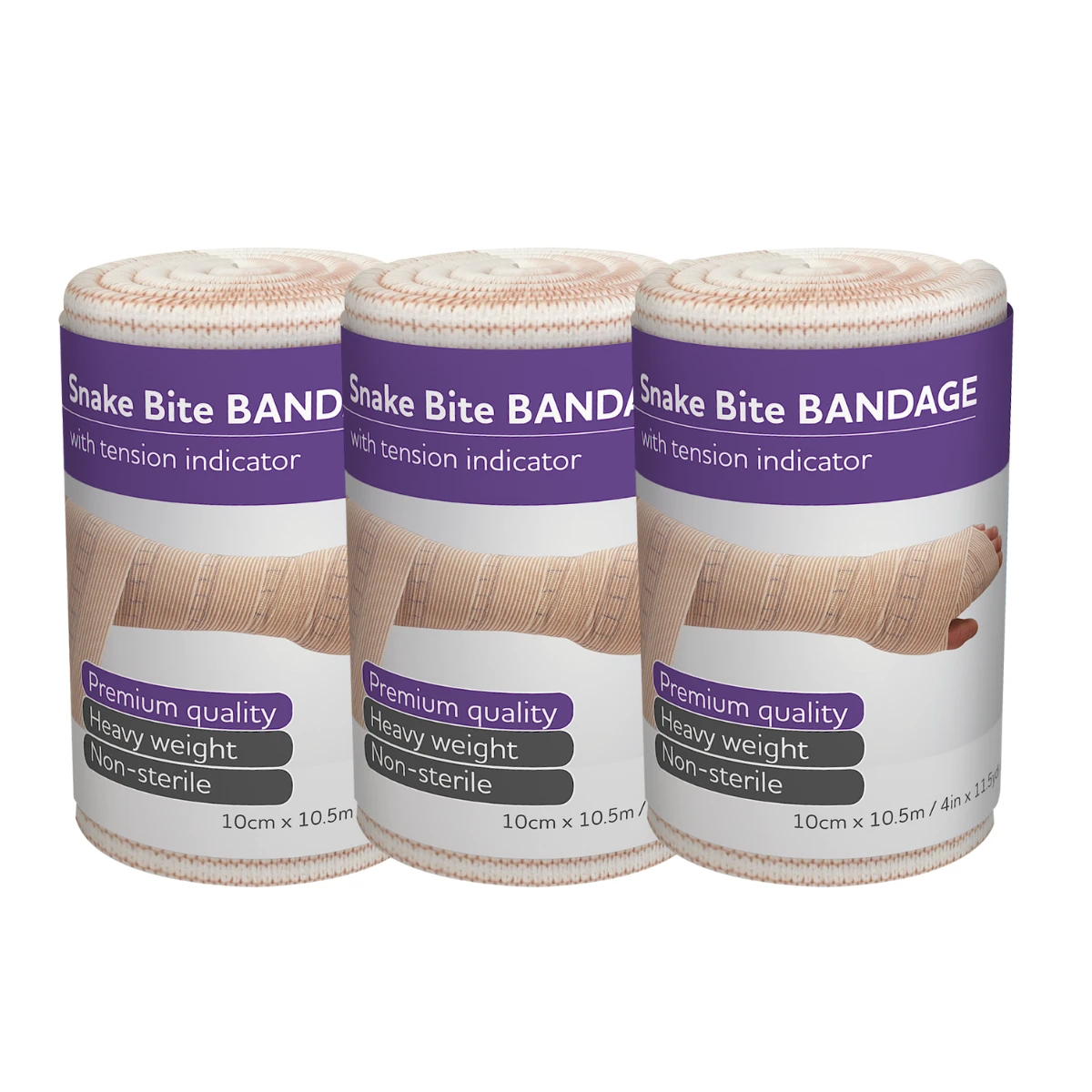 3x Pack Specifically Designed for bites from: Australian Snakes Funnel Web & Red Back Spiders Blue Ringed Octopus Cone Shell Stonefish The Premium Snake Bite Bandage with Continuous Indicators is a Premium Heavy weight Conforming Bandage. Perfect for use with the Pressure Immobilisation Technique, which is used for the treatment of all Australian Snake and Funnel Webbed Spider bites, Blue Ringed Octopus and Cone Shell stings. This bandage is of sufficient length to bandage a large adult leg. Indicators show when the correct level of compression is achieved. The unique stitching technology ensures the correct pressure is evenly applied over the entire limb. Ideal for: Hiking / Bushwalking Camping Remote Area Travel Snake Bite First Aid Training Home / Backyard Outdoor Activities Benefits: Wider and longer than most crepe or elastic bandages. Continuous indicators ensure you have the correct pressure over the entire limb. Suitable for the treatment of all Australian Snake and Funnel Webbed Spider bites, Blue Ringed Octopus and Cone Shell stings. Specifications: 10cm x 6.2cm Unrolled 10cm x 3.3M Un-Stretched 10cm x 10.5M Stretched Weight: 95 grams Includes instructions (C.AFHSB100x3)