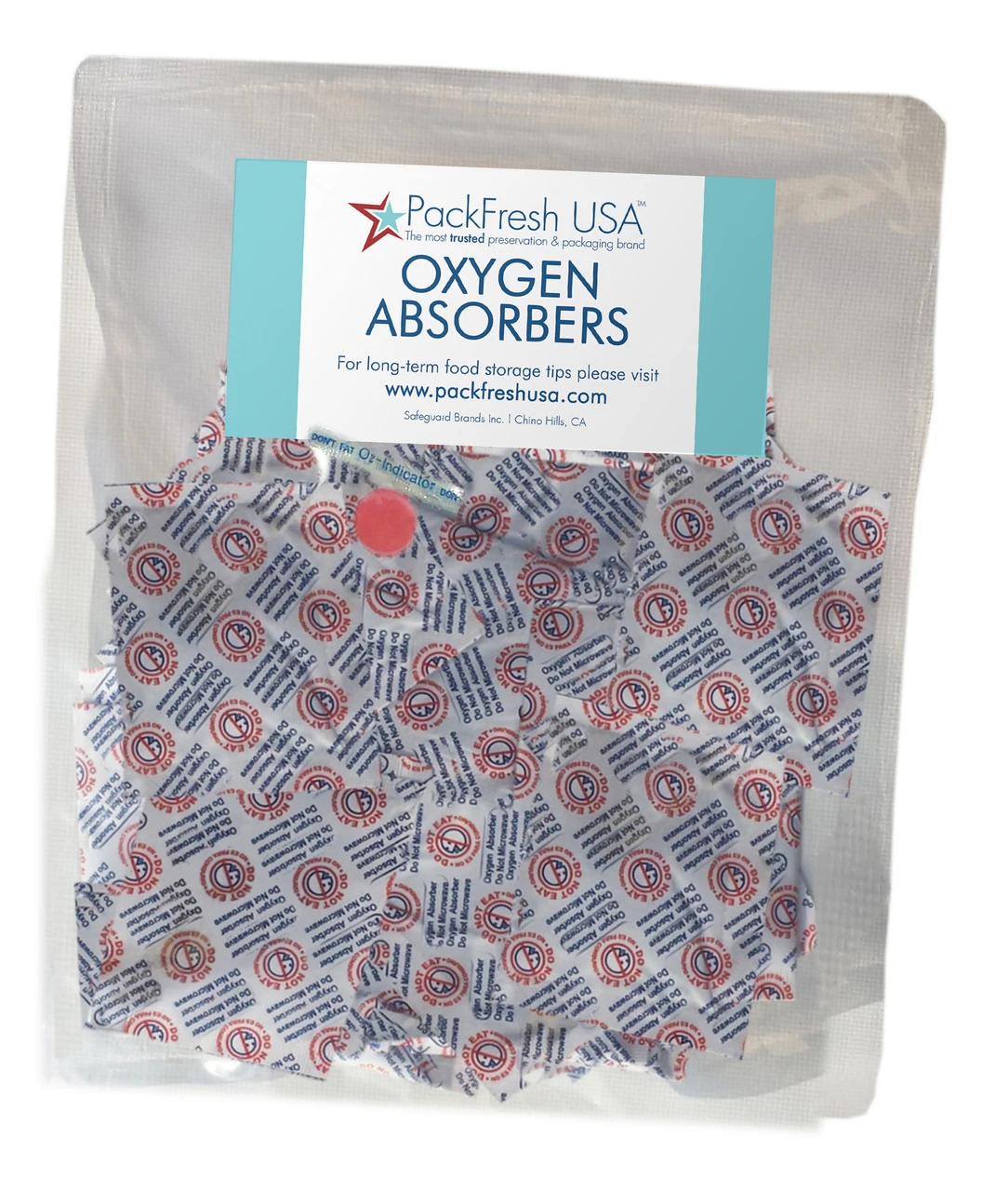 500cc Oxygen Absorbers 10pk These 500cc Oxygen Absorbers are guaranteed to absorb at least 180% of their rating, giving you a buffer of safety. Each package contains an oxygen indicator to guarantee freshness. Use in Mason Jars and Mylar bags. Features Absorb 180-300% of their rating as a safety buffer Work in Mason & Kilner jars and Mylar bags Oxygen indicators included ensuring freshness – a Shade of Pink or Red indicated it is ready to use, The indicator will turn dark blue when oxygen is present. Specifications Includes: 10x 500cc Oxygen Absorbers, Oxygen Indicator Made by Packfresh USA Click Here for How to Use Oxygen Absorbers in Other Containers Click Here for How to Use Oxygen Absorbers in Mason Jars Click Here for How To Seal 5 Gallon (18.9L) Mylar Bags Click Here for How to Seal Mylar Bags (Quart or Gallon Size)(946ml or 3.8L)  (SSL-500)