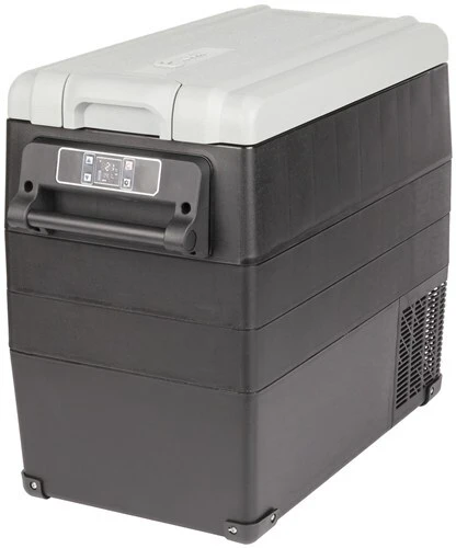 55L Rovin Portable Fridge with Bluetooth • Digital Control Panel • Bluetooth • Both 12/24V & 240V mains power supplies included Boasting 55 litres of internal cooler space, this portable compressor refrigerator can provide temperatures down to -20°C. Supplied with both AC and DC power leads you can use it at home or while traveling. Pair its built-in Bluetooth with your smartphone and have complete control of your temperature while it’s in your boot. Other features include digital temperature controls, a reliable compressor, and a sturdy hard plastic shell that will keep it in shape even on the bumpiest of rides. It comes with a 2-year warranty for peace of mind. Features: • 55L capacity • -20°C to + 20°C • Dual Zone Fridge / Freezer • Removeable internal Basket • Heavy Duty Handles (for tying down on fridge slides etc) • Internal LED light • High efficiency: Max or Eco settings • Smartphone app control via it’s built-in Bluetooth • 12/24VDC power adaptor included • 240V mains adaptor included • 3-Stage Low Battery Cutout • 2 Year Warranty Specifications: Power Consumption : 45.0W (up to 3.8amps @ 12 volt) Dimensions: 69cm x 34.5cm x 54.4cm Weight (net): 12.1kg Refrigerant: R134a Internal Fuse: 15amp Built-In Bluetooth. Requires Rovin Fridge app from iTunes App store (Apple Devices) or Google Store (Android Devices) What’s in the Box: 1x 55 Litre Portable Compressor Fridge / Freezer 1x Internal (removable) Basket 1x DC Power Cord 1x AC Mains to DC Power Cord 1x Instruction Manual Protective Insulated Cover is available as an optional extra. Please note due to it’s size freight charges apply at the checkout. (GH2240)