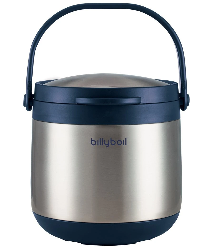 Billy Boil 4.5L – Vacuum Insulated, Stainless Steel Thermal Cooker The Billyboil Thermal Cooker cooks your food using retained heat, for up to 12 hours. It uses no energy after the initial heat-up phase on your existing stovetop. This means you can save up to 80% of your cooking energy usage! The Billyboil has two main parts, which you can see in the graphic below: A stainless steel inner pot to use on your stove, and A vacuum-insulated outer pot with a carry handle. The Billyboil insulated thermal cooker components. This thermal cooker has an internal capacity of about 4.5 litres. It suits cooking for four or more people. You can also use it for cooking in larger batches to make some extra meals for later. It’s Like a Slow Cooker – Only Better Slow cookers are great because they: Lessen the chance of food burning or boiling-over, Allow for better infusion of flavours, Can save time with ‘one-pot’ style cooking. BUT regular slow cookers still need a continuous supply of energy, just like traditional stovetop cooking. If you enjoy the benefits of a slow cooker but want an energy-efficient yet straightforward cooking solution, then the Billyboil is for you. Here’s how easy it is to use: Step 1 – Use the stainless steel inner pot as you would normally. Bring your food to the boil, or cook as required. Step 2 – Once the food is heated through, switch off your stove. Then, place the inner pot inside the insulated outer pot and close the lid. The Billyboil will continue to cook the food using the retained thermal energy in the already heated-up food. Step 3 – Remove the inner pot when the cooking time has elapsed, or up to 12 hours later, when you’re ready to eat. The Billyboil is easy to use on any existing stovetop. Billyboil Thermal Cooker Benefits The thermal cooker concept was developed for those travelling in caravans, motor-homes or when camping. However, thermal cooking is an ideal solution for everyday cooking in the home. Here’s why: Time-Saving. No boiling-over and no burning of food possible. Let your food keep cooking safely and unattended while you get on with something else. Energy Saving. Zero energy consumption after the initial heat-up phase on your regular stove. High Performance. It keeps food cooking above 60ËšC for up to 12 hours. This is 50% longer than other thermal cookers on the market. Versatile. Use it to cook vegetables, curries, stews, or just about anything. Compatible. Suitable to use in conjunction with any stovetop (gas, electric, induction or even camp stoves). Safe. The lid can be locked closed with the handle for safe travelling. This also minimises any spillage if the Billyboil is accidentally knocked over. Removable Lid. The lid can be clipped off to keep your food piping hot at the table whilst serving. With the cover off, you can even use the Billyboil as an insulated ice bucket for super-chilled drinks. How the Billyboil thermal cooker saves energy compared to other cooking methods. Specifications – Billyboil Thermal Cooker 4.5L Power Consumption Nil Components Double-wall vacuum Insulated ‘outer pot’ with carry handle, stainless steel ‘inner pot’ with handle and removable silicone handle cover. Capacity 4.5 litres (inner pot). Compatibility Works with electric, gas, induction, and camp stoves. Dimensions Outer pot = 25cm high by 25cm wide Inner pot = 17.5cm high by 20cm wide Weight 3.1kg Carton Quantity 4 – this listing is for 1 unit Materials Stainless steel type 304 inner and outer pot. Outer pot has a plastic (polypropylene) handle and framing. Product Identifiers Billy Boil 4.5L Thermal Cooker, 9398348333487 (Barcode) Further Documentation Instructions (Included) Warranty 2 Years  Frequently Asked Questions What recipes do you suggest? Any recipe designed for extended simmering, slow cooking, or one-pot cooking is ideal for the Billyboil. In other words, you probably already have a stack of suitable recipes. Is it compatible with electric induction stovetops? Yes. It has a thick base which is appropriate for induction stovetops. It is of course also suitable for regular electric and gas stoves as well. It even works on camp stoves, alcohol stoves, etc. How should I clean the Billyboil? You can clean the Billyboil like any stainless steel cookware. Use warm soapy water to clean the inner pot. For stubborn marks, use a stainless steel cleaner or a cleaning paste, like Gumption. Avoid using steel wool or abrasives as they may scratch the stainless steel. To clean the outer pot, use a damp cloth – don’t submerge it in water. (9398348333487)