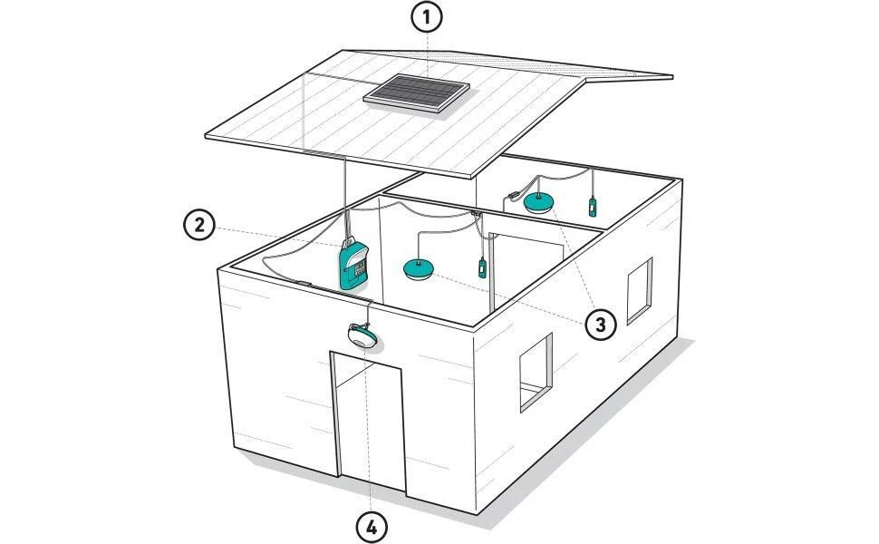 BioLite Solar Home 620+ Off Grid Kit Originally designed and used for off grid lighting for family homes in Africa, this kit is ideal for: Off Grid Cabins and Weekender’s Shed or Garage Lighting Van, Caravan or Camping Emergency Preparedness Everyday use p.p1 {margin: 0.0px 0.0px 0.0px 0.0px; font: 11.0px ‘Helvetica Neue’; color: #000000} p.p2 {margin: 0.0px 0.0px 0.0px 0.0px; font: 11.0px ‘Helvetica Neue’; color: #000000; min-height: 12.0px} span.s1 {font-kerning: none} The SolarHome 620 brings modern lighting, energy, and entertainment to transform any structure into an off-grid home. The easy-to-install solar panel captures daily sun to charge up a central control box which powers 3 hanging lights, USB charge-out, and an MP3/FM radio system. BioLite’s first-crossover product, the SolarHome 620 is currently in use in over 100,000 homes across western Kenya. Perfect for vans, sheds, or the next power outage, the system comes packed in a kit the size of a shoebox. Features: 6W solar panel connects to a 23 Wh Control Box which fully charges in 6 hours of sunlight LCD Display which shows solar charge input, current battery status, power available, hours of light available, date and time 3 overhead lights, one with motion sensor Separate Wall-mounted switches to control the hanging lights Control Box plays radio/MP3 & provides charge out & built-in light in addition to the 3 overhead lights 18ft daisy-chainable cables for multi-room lighting Dual USB Charging Ports (fully charges up to 3 phones) Up to 20 hours of light while running all four lights Specifications: p.p1 {margin: 0.0px 0.0px 0.0px 0.0px; font: 11.0px ‘Helvetica Neue’; color: #000000} p.p2 {margin: 0.0px 0.0px 0.0px 0.0px; font: 11.0px ‘Helvetica Neue’; color: #000000; min-height: 12.0px} span.s1 {font-kerning: none} Inputs: Solar panel port x1 (PV Module) Dimensions: Control Box: 7.9 x 6.1 x 2.9 in (200 x 154 x 68 mm ) Hanging Lights (each): 5.9 x 5.5 x 3.2 in (150 x 140 x 82 mm ) Solar Panel: 11.4 x 7.5 x 0.6 in (290 x 190 x 16 mm ) Lumens: 120 Lm per light (450 Lm total) Runtime (1 Day of Full Sun Solar Charging): All four lights on Low: 20 hours All four lights on MED: 10 hours All four lights on HIGH: 6 hours Up to 30 Hours of radio Weight: Control Box: 610g (1.34 lbs) Hanging Lights (each): 230g (0.51 lbs) Solar Panel: 720g (1.59 lbs) Outputs: USB Charge Out x2 (USB Devices) DIN Port x1 (Expansion Battery) Light Port x2 Light Junctions x3 (Light Extensions) Battery: 3600 mAh @ 6.5V (23 Wh), LiFEPO4 Cable Lengths: Lights: 18 ft (5.5m) All hanging lights are chainable Solar Panel: 21 ft (6.5m) In the Box: 1xControl Box 2x Hanging Lights 1x Security Light 1x Solar Panel 1x USB Adapter 1x Wall Screws & Mounting Nails Kit 1x Detailed Instruction Manual Frequently Asked Questions: How long does it take to charge the whole system? Approximately 6 hours in strong, direct sun. Set your panel up in a high, sunny spot for maximum charging. How do I tell how much power I’m creating or storing? The LCD display on the Control Box gives you real-time feedback on sun strength and power available in your battery Can I leave the solar panel out in all weather? Yes – in fact, rain helps keep the panel clear of dust for better performance. Just make sure that after heavy storms the panel is clear of debris and has not shifted. Why isn’t there an audio jack to play music? As a crossover product from BioLite, microSD and FM radio are the most common ways to listen to music in Kenya with the added benefit of not requiring power from your mobile phone. Loading up a microSD is easy and keeps your phone free for other functions Can the lights be controlled individually? Yes! Each hanging light features its own on/off switch and can be set to LO, MED, or HI. They daisy-chain together from a single power source, but their brightness can be controlled individually. How does the motion sensor work? One of your 3 hanging lights has an “eye” in the middle of the bulb. Press the light switch 4x until a small red light appears – the eye is now activated and your motion sensor will turn on with nearby movement, keeping the light on for 30 seconds before automatically turning off. I don’t have a van or cabin – can I use this for emergencies? Absolutely. The SolarHome 620 packs down to the size of a shoebox that you can keep stored easily right under your sink or cupboard. We recommend charging up your Control Box in advance so you get a headstart in case a power outage occurs (SHX1101)