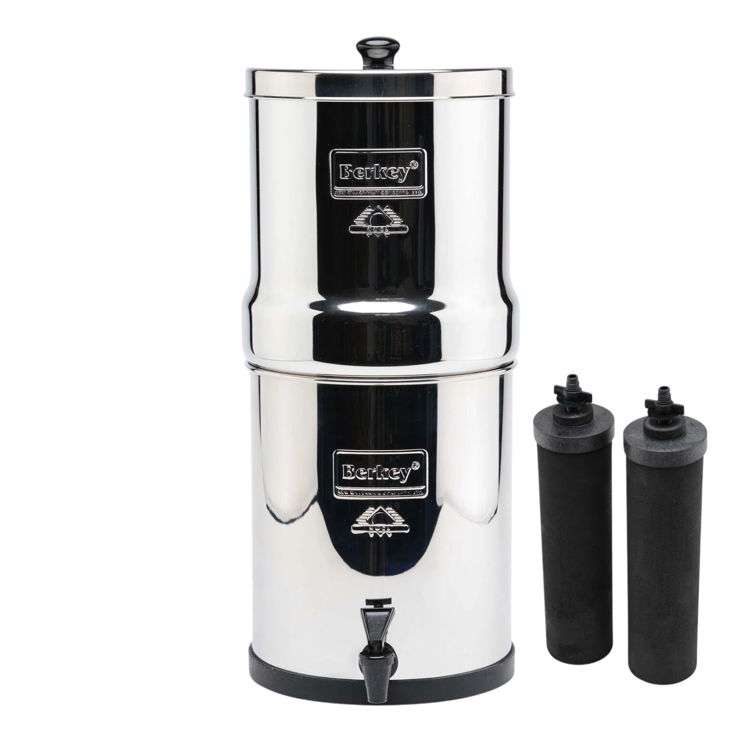 Blemished (Factory Second) Big Berkey Water Purifier This is a Brand New Factory Second Big Berkey 8.5L (total 17L) with very minor aesthetic blemishes to the stainless steel chambers. The blemishes may be on one or both stainless steel chambers or the stainless steel lid. The blemishes may include small marks or dints. These blemishes do not affect the operation of the unit or the purity of its water and we provide a 12-month warranty on this product. This Factory Second Big Berkey is supplied with brand new filter elements, spigot (tap), washers and nuts. All blemishes are strictly cosmetic. Big Berkey Package includes: 1x New Big Berkey including upper and lower stainless steel chambers, stainless steel lid, tap, non-slip base ring 1x New Pair Black Berkey Purification Elements including 2 wingnuts, 2 washers, 1 Priming Button Big Berkey Specifications: 8.5 Litre clean water storage capacity 49cm High 21.6cm Diameter Made with high-quality AISI 304 Food Grade Stainless Steel Equivalent micron rating of 0.02 or better (Black Berkey Elements) Berkey Water Purifiers are known for their healthy, natural method of water filtration with results that speak for themselves. They are constructed of high quality polished stainless steel and provide the highest standards of water purification. The Big Berkey system is the perfect water purification system for one to two people. It is designed to pack down to make travelling and storage easier. The Big Berkey system with Black Berkey Purification Elements removes viruses, pathogenic bacteria, cysts and parasites and extracts harmful chemicals such as herbicides, pesticides, VOCs, organic solvents, radon 222 and trihalomethanes. It also reduces rust, silt, sediment, bad taste and odours and unhealthy minerals such as lead and mercury all while retaining healthy ionic minerals such as magnesium, potassium and calcium. Constructed of highly polished 304 stainless steel the system comes complete with two purification elements and utilizes the latest technological advances. Features: Filters up to 10.4 litres per hour with 2 Black Berkey Purification Elements Completely off-grid operation, no electricity or plumbing required Freestanding system, lightweight & easy to move and transport. Use it on the kitchen bench, take it camping, take it out the garage or backyard then move it back to the kitchen One pair of Black Berkey Purification Elements will last for approx 22,600 litres Black Berkey Purification Elements: Remove bad odours and taste Removes chlorine to below lab detectable levels Removes detergents and solvents Removes viruses to greater than 99.999% Removes parasites to greater than 99.999% Exceeds Purification Standard (Log 4): MS2 Coliphage – Fr Coliphage Exceeds Purification Standard (Log 6): Raoultella terrigena TRIHALOMETHANES – Removed to >99.8% (Below Lab Detectable Limits): Bromodichloromethane – Bromoform – Chloroform – Dibromochloromethane Removes inorganic minerals Removes heavy metals including chromium, lead, arsenic and aluminium Removes cloudiness, silt and sediment. You can filter creek, river and dam water safely Removes hormones, pharmaceuticals, petrol, alpha & beta radiologicals and uranium Removes herbicides and pesticides including Glycophosphates (ie Round-up) Removes PFOA & PFOS Lifespan: 22,600 Litres or when flow rate stops (approx up to 3-5 years) Pictures for illustration purposes only. Please Note: Some assembly required. Prior to travelling all filters must be removed from your system and securely stored to prevent damage. For more information contact the store. (BBx2BB_FS_No)