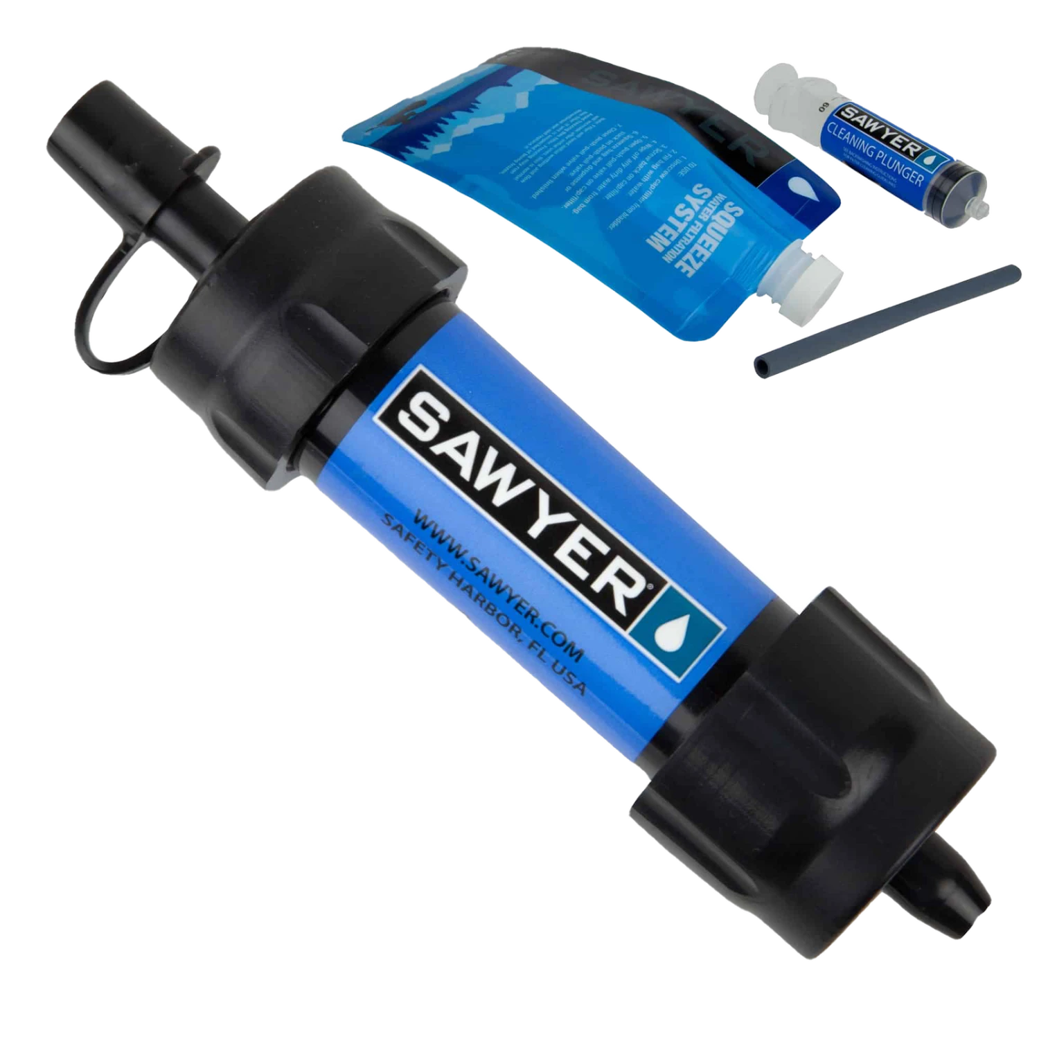 Sawyer Mini Water Filter Sawyer MINI weighs only 56 grams, fits in the palm of your hand, and provides 0.1-micron absolute filtration — removing 99.99999% of all bacteria, such as salmonella, cholera and E.coli, and removing 99.9999% of all protozoa (such as giardia and cryptosporidium). Simply attach the easy-to-use MINI to the included drinking pouch, use the included straw to drink directly from a water source, connect it to hydration pack tubing, or screw it onto standard disposable water and soda bottles. Rated up to 100,000 filtered gallons of water (378,541 litres), the award-winning MINI is perfect for everything from camping with the kids to travelling abroad where tap and bottle water cannot be trusted to kitting out your emergency go-bag. Features 0.1 Micron Absolute Filtration The Sawyer Mini contains a high number of tiny ‘U’ shaped hollow fibre micro-tubes that trap contaminants while allowing decontaminated water to freely pass through at a high flow rate — eliminating the need to store water and reducing the possibility of water contamination after the filtration process. The Sawyer MINI is certified for 0.1-micron filtration, meaning there is no pore size larger than 0.1 microns in size. This makes it impossible for harmful bacteria (like salmonella or leptospirosis), protozoa, or cysts like E. coli, Giardia, Vibrio cholera, and Salmonella typhi to pass through the filter. All Sawyer water filters meet or exceed Environmental Protection Agency (EPA) recommended removal rates. Rated to filter up to 378,541 litres The MINI’s filtering membranes are sturdy enough to withstand backwashing using the included syringe, restoring up to 98.5% of the filter’s flow rate. The MINI can be cleaned and reused almost indefinitely with no expensive cartridges to replace… ever. We recommend backwashing and sanitizing the filter after every outing for optimized use. Great for outdoor recreation, hiking, camping, scouting, domestic and international travel, and emergency preparedness the Sawyer MINI gives you a number of ways to access clean water. Simply fill up the included reusable pouch at any water source, screw the filter onto the pouch, and drink directly from the filter or squeeze water into a water bottle. You can also drink directly from water sources with the included straw. For even more versatility, screw the filter onto most standard disposable water or soda bottles, or attach it inline on hydration packs (sold separately). Versatile Can be used on any standard 28 mm threaded bottle or pouch Tested Quality The Sawyer MINI filter provides higher levels of water filtration while also outlasting other personal filters on the market. All of these filters are air tested three times before leaving Sawyer’s production facility to ensure that no pathogens can slip through our filter fibres, a claim that no other water filtration company can make. Compact & Lightweight With a total field weight of only 56 grams, the compact MINI rolls up into its included collapsible mylar pouch to take up minimal space in your pack and won’t weigh you down. Specifications Sawyer Mini Kit Includes: 1 x Sawyer MINI Water Filter with Tip Cap, 1 x 0.5 Litre Reusable Squeeze Pouch, 1 x 18 cm Drinking Straw, 1 x Cleaning Plunger (Syringe) Longevity: Up to 100,000 Gallons (378,541 Litres) Dimensions: 13.5 cm (H) x 3.5cm (W) x 3.5cm (L) Filter material: fibreglass; Filter membrane: a membrane made of U-hollow fibre pores with a maximum of 0.1 micron Weight: 57 g; Removes: 99.99999% of Bacteria, Protozoa, E. Coli, Giardia, Vibrio cholerea, Salmonella Typhi, Leptospirosis, and microplastics. Recommended Use: all kinds of hiking, fishing, kayaking, trips, camping, emergency preparedness and more. (P_SawyerMini)