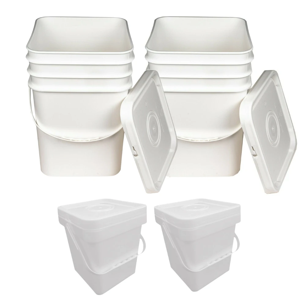 4 Piece Food Grade Bucket Storage Kit Your food storage choices are endless with this 4 Piece Food Grade Bucket Storage Kit. It includes a 20 litre, 15 litre & two 5 litre food grade, weatherproof & vermin-proof sealable buckets. Use together with Mylar Bag & Oxygen Absorbers (sold separately) to preserve food for the long term. Features Ideal to pair with Mylar Bags & Oxygen Absorbers (sold separately) for Ultimate Long Term Food Storage Food Grade & BPA Free Stackable Weatherproof Vermin Proof Convenient Carry Handle Snap Lid Heavy Duty Construction Made in Australia Tamper Seal 20L & 5L Bucket Made from PP – Can hold Hot liquids compared to other plastics Specifications Includes: 1x 20L Food Grade Bucket, 1x 15L Food Grade Bucket & 2x 5L Food Grade Buckets 20L Bucket Dimensions: 27cm x 27cm x 39.5cm 15L Bucket Dimensions: 27cm x 27cm x 32cm 5L Bucket Dimensions: 19cm x 19cm x 21.2cm 20L Bucket Material: PP (Polypropylene) 15L Bucket Material: HDPE (High-Density Polyethylene) 5L Bucket Material: PP (Polypropylene) (FoodBucketKit)