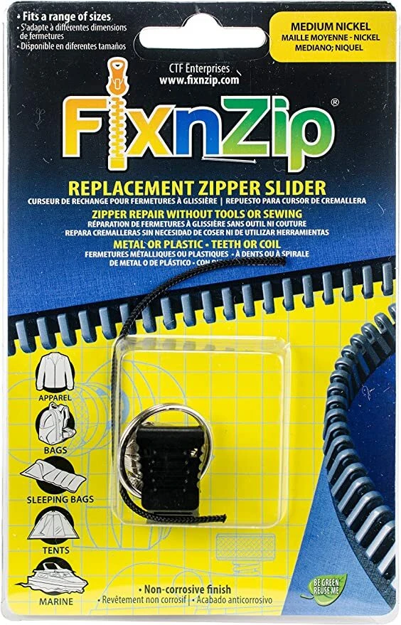 Instant Zipper Repair Medium Nickel Quite often harsh UV will cause a trusty nylon bodied zipper mechanism to simply shatter rendering you unable to close up the “clears” on your boat. It always happens at the most inconvenient time. This made-in-the-USA product is a diecast, nickel plated replacement zipper. How do you fit it onto the clear zip?! Here’s the trick; This unit actually screws apart to retro-fit it on. You fit it on to the existing zipper tracks on each side of the clears, screw up the unit and you have the ability to zip up the clears again! Magic. Great to tidy up a boat you are about to sell or to fix those clears that have not worked properly for some time. Features US Made Non-Corrosive Finish Instant Repair without tools or sewing Replacement Zipper Slider For use on Apparel, Bags, Sleeping Bags, Tents or Marine Use Specifications Size: Medium Nickel (00405)