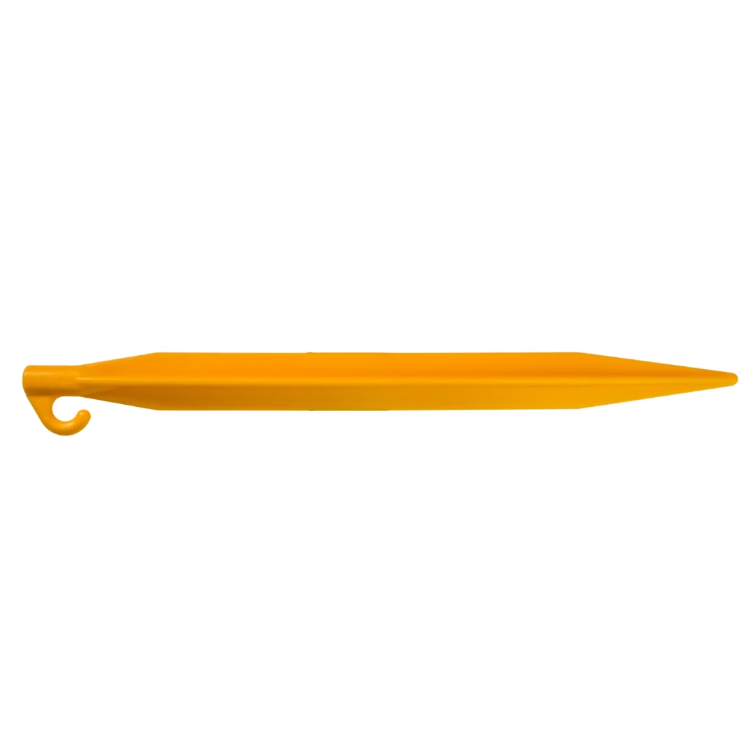 Yellow Sand Peg (each) Camping or setting up a tent on the beach? Make sure you have the right pegs for the right environment, to prevent runaway tents and gazebos! These have a lightweight design, constructed to give fantastic grip in the sand and great design features making them simple to use. Made from durable polypropylene they are perfect for soft and sandy ground. The best part, they are Australian Made. Features: Wide, extra strong shaft for excellent grip in soft ground One attachment option on the head Star-shaped picket delivers holding power Flat, round head to push into the ground with hands and gives a large base for mallet hammering Lightweight and easily transportable Manufactured in Australia Specifications: Colour: Yellow Length: 220mm, 300mm or 500mm (Please Select Size) Sold as each (39_P)