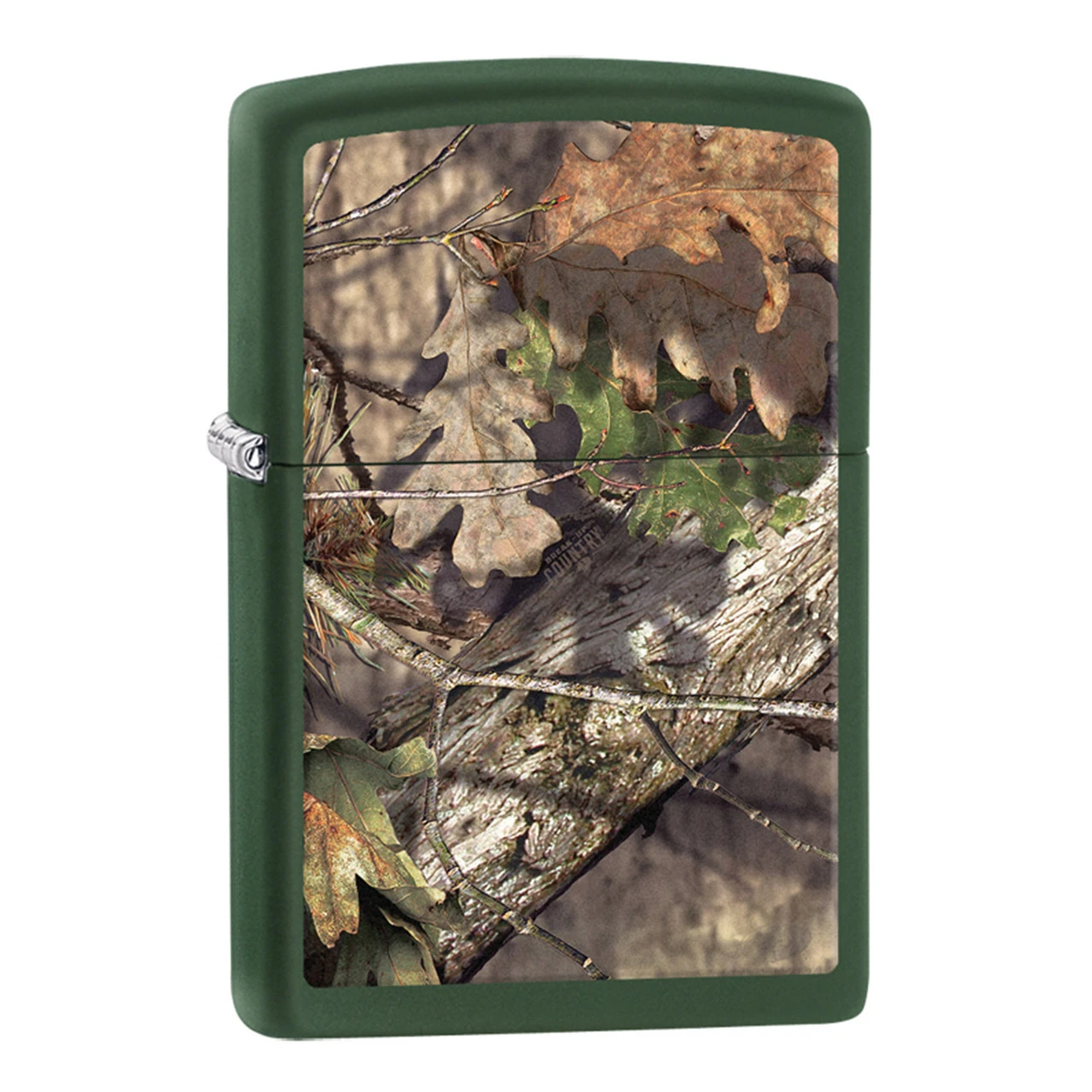 Zippo Mossy Oak Lighter This Mossy Oak camo design is featured on the front surface of a green matte lighter. Comes packaged in a gift box. For optimal performance, use with Zippo premium lighter fluid. Packaged in a Black Felt box, this would be an ideal gift for outdoor enthusiasts or treat yourself. You deserve it. Features Genuine Zippo windproof lighter with distinctive Zippo “click” All metal construction; windproof design works virtually anywhere Refillable for a lifetime of use; for optimum performance, we recommend genuine Zippo premium fluid, flints, and wicks Made in USA Specifications Height: 5.715cm Width: 1.27cm Depth: 3.81cm Weight: 56.699g Fuel: Zippo premium lighter fluid (sold separately) (29129)