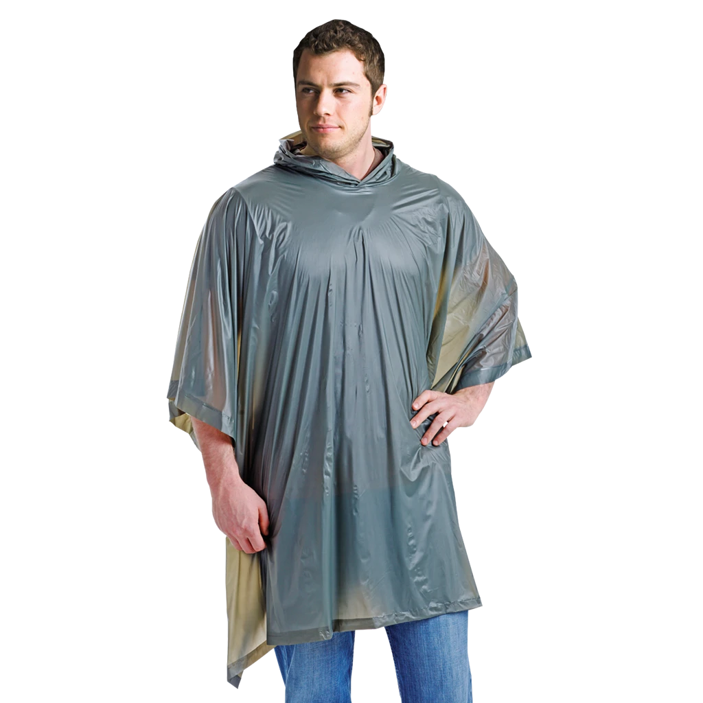 Deluxe Large Poncho Olive Drab (OD) Deluxe rain poncho made from waterproof vinyl material with electronically welded seams. This waterproof poncho includes attached hood with PVC snap button closures on sides. Thicker and stronger than most others. Features Waterproof vinyl material which is thicker and stronger than others Electronically welded seams Includes attached hood PVC snap button closures on sides One Size fits all Specifications Colour: Olive Drab Size: 132cm x 203cm Shoulder to Shoulder Length: 100cm (COG9269)