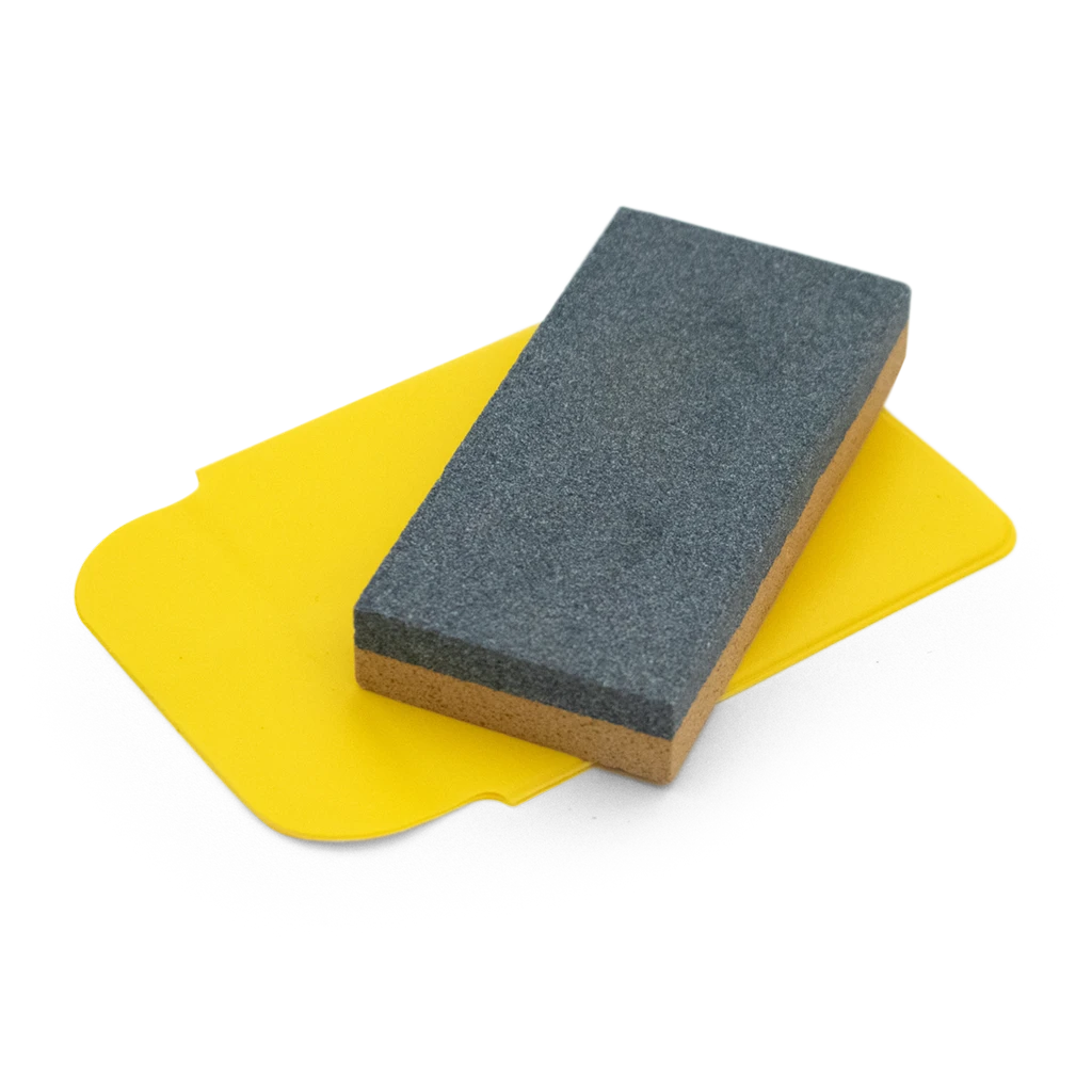 Coghlans Sharpening Stone This stone features high-quality coarse and fine grit made of electric furnace abrasive grain. It comes complete with vinyl carrying case and sharpens most sport knives quickly and easily. Features Two Grit Sizes 120 (Gray), 400 (Beige) Specifications Size: 7.6cm x 3.8cm x 1.3cm Weight: 85g Instructions: Put a small amount of light oil on the coarse side of the stone. Place blade flat on stone in slight diagonal. Tip back of blade up about 30 degrees. Draw blade against stone diagonally from heel to tip for several strokes. Turn the blade on other side and repeat. Lubricate the fine side of stone and repeat entire procedure. (COG7945)