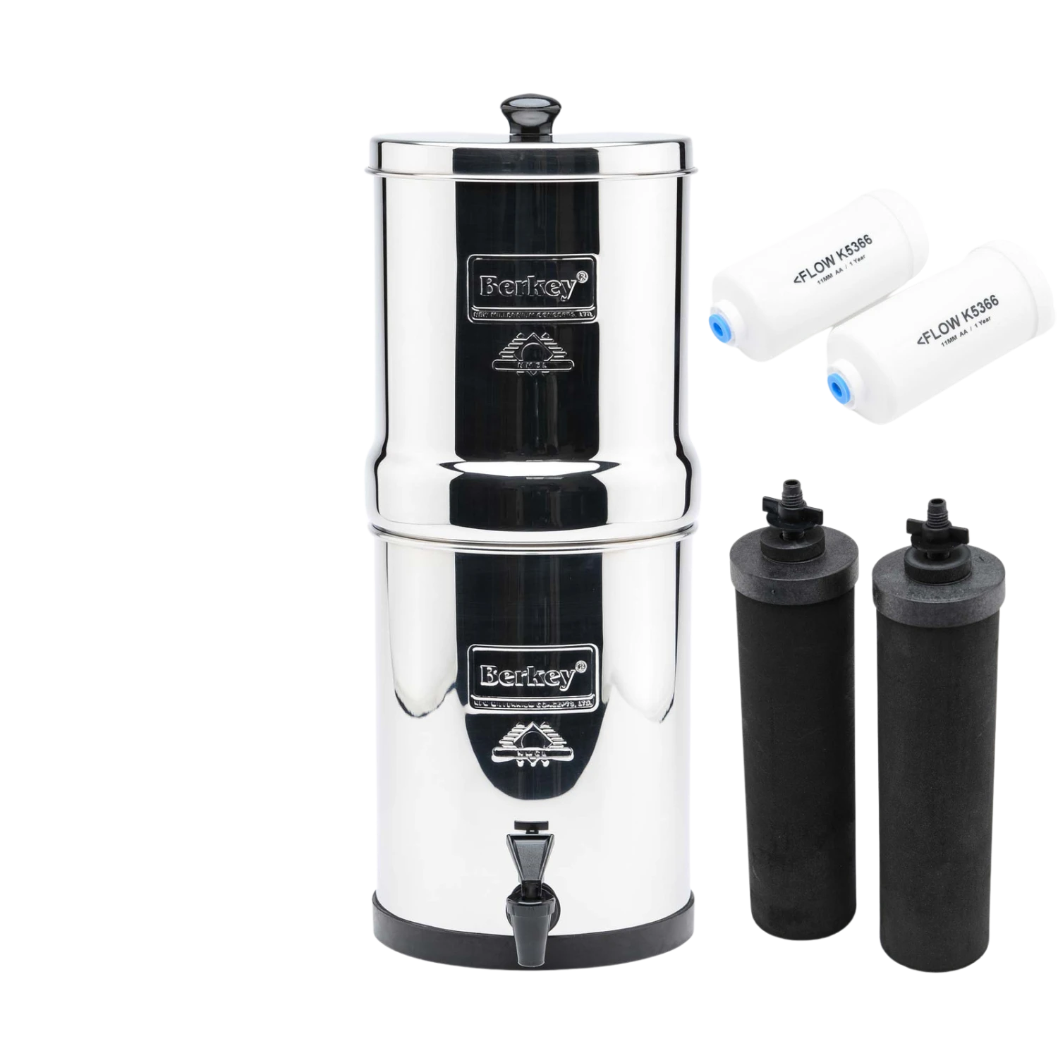 Crown Berkey Fluoride Reduction Pack Crown Berkey Fluoride Reduction Package includes: 1x Crown Berkey including upper and lower stainless steel chambers, stainless steel lid, tap, non-slip base ring 1x Pair Black Berkey Purification Elements includes 2 Wingnuts, 2 Washers, 1x Airlock Clip & new priming / backflush Kit 1x Free Red Dye Test Kit 1x Pair Berkey PF2 Fluoride Reduction Filter Elements (up to 98.4% Fluoride reduction) Crown Berkey Specifications: 22 Litre clean water storage capacity 76cm High 28cm Diameter Made with high quality AISI 304 Food Grade Stainless Steel Equivalent micron rating of 0.02 or better (Black Berkey Elements) Berkey Water Purifiers are known for their healthy, natural method of water filtration with results that speak for themselves. They are constructed of high quality polished stainless steel and provide the highest standards of water purification. The Crown Berkey system is the perfect water purification system for large families or groups. It is designed to pack down to make travelling and storage easier. The Crown Berkey system with Black Berkey Purification Elements removes viruses, pathogenic bacteria, cysts and parasites and extracts harmful chemicals such as herbicides, pesticides, VOCs, organic solvents, radon 222 and trihalomethanes. It also reduces rust, silt, sediment, bad taste and odours and unhealthy minerals such as lead and mercury all while retaining healthy ionic minerals such as magnesium, potassium and calcium. Constructed of highly polished 304 stainless steel the system comes complete with two purification elements and utilizes the latest technological advances. Features: Filters up to 24.6 litres per hour with 2 Black Berkey Purification Elements Completely off-grid operation, no electricity or plumbing required Freestanding system, lightweight & easy to move and transport. Use it on the kitchen bench, take it camping, take it out the garage or backyard then move it back to the kitchen One pair of Black Berkey Purification Elements will last for approx 22,600 litres One pair of Berkey PF2 Fluoride Reduction Elements reduce up to 98.4% of fluoride & have a lifespan of up to 2 years / 3750 litres Black Berkey Purification Elements: Remove bad odours and taste Removes chlorine to below lab detectable levels Removes detergents and solvents Removes viruses to greater than 99.999% Removes parasites to greater than 99.999% Exceeds Purification Standard (Log 4): MS2 Coliphage – Fr Coliphage Exceeds Purification Standard (Log 6): Raoultella terrigena TRIHALOMETHANES – Removed to >99.8% (Below Lab Detectable Limits): Bromodichloromethane – Bromoform – Chloroform – Dibromochloromethane Removes inorganic minerals Removes heavy metals including chromium, lead, arsenic and aluminium Removes cloudiness, silt and sediment. You can filter creek, river and dam water safely Removes hormones, pharmecuticals, petrol, alpha & beta radiologicals and uranium Removes herbicides and pesticides including Glycophosphates (ie Round-up) Removes PFOA & PFOS Reduces Fluoride for the first several hundred gallons Lifespan: 22,600 Litres or when flow rate stops (approx up to 3-5 years) Berkey PF2 Fluoride Reduction Elements: Offer up to 98.4% reduction for Fluoride, Arsenic, MTBE and other heavy metal ions Installed inline with Black Berkey Purification Elements Lifespan: 3750 Litres per pair or 2 years, whichever comes first. Black Berkey Purification Element Test Results: Click here for Heavy Metal, Chemical, VOC, Pesticide, Pharm, Petrol, etc Test Result Click here for Bacteria & Virus Test Result Click here for PFOA, PFOS (Fire Fighting Foam) Test Result Click here for Lead reduction Test Result Click here for Gross Alpha Radiological Test Result Click here for Gross Beta Radiological Test Result Click here for Uranium reduction Test Result Click here for PF2 Fluoride Reduction Test Result Please Note: Some assembly required. Prior to travelling all filters must be removed from your system and securely stored to prevent damage. For more information contact the store. (CrownSTDFluoride)