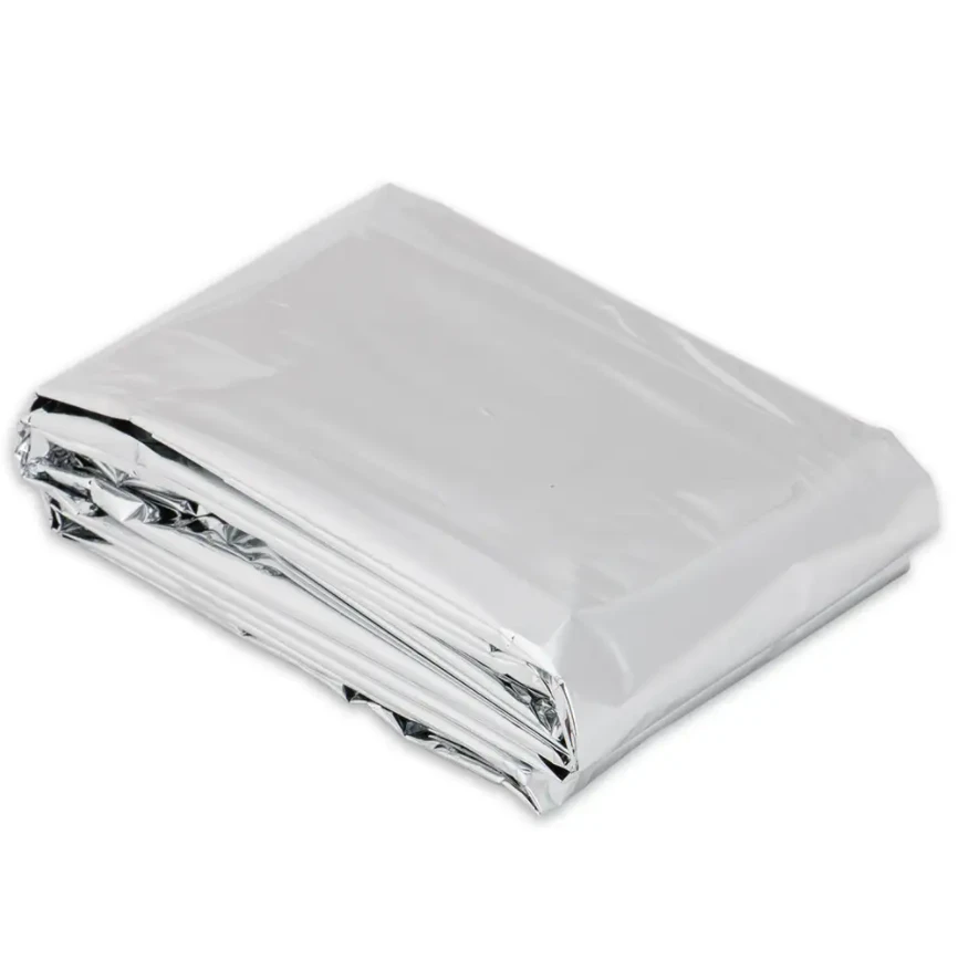 Trailblazer Emergency Blanket Silver Whether it’s in your car, camping gear or your bug-out stash, don’t leave home without this emergency survival sleeping blanket. This must-have blanket is essential for overcoming exposure to harsh outdoor elements like rain, sleet and snow. Thanks to its innovative design, this emergency survival blanket won’t crack, mildew or shrink. It’s great for constructing a survival shelter, too! It’s perfect for survivalists or Hikers as it only weighs 54grams. It’s lightweight and folds into a pocket-sized square. Features: Reflects up to 90% of your body heat back to you 100% windproof and waterproof construction Super durable polyester material Will not mildew, crack or shrink Great for building shelter Compact & Lightweight Reduces and blocks thermal transmission to eliminate thermal detection Specifications: Dimensions: 132cm x 210cm Colour: Silver Weight: 54g Please Note: Larger Quantities are available for Larger Events, Councils, etc. Contact the Store for more information. (SSEBS)