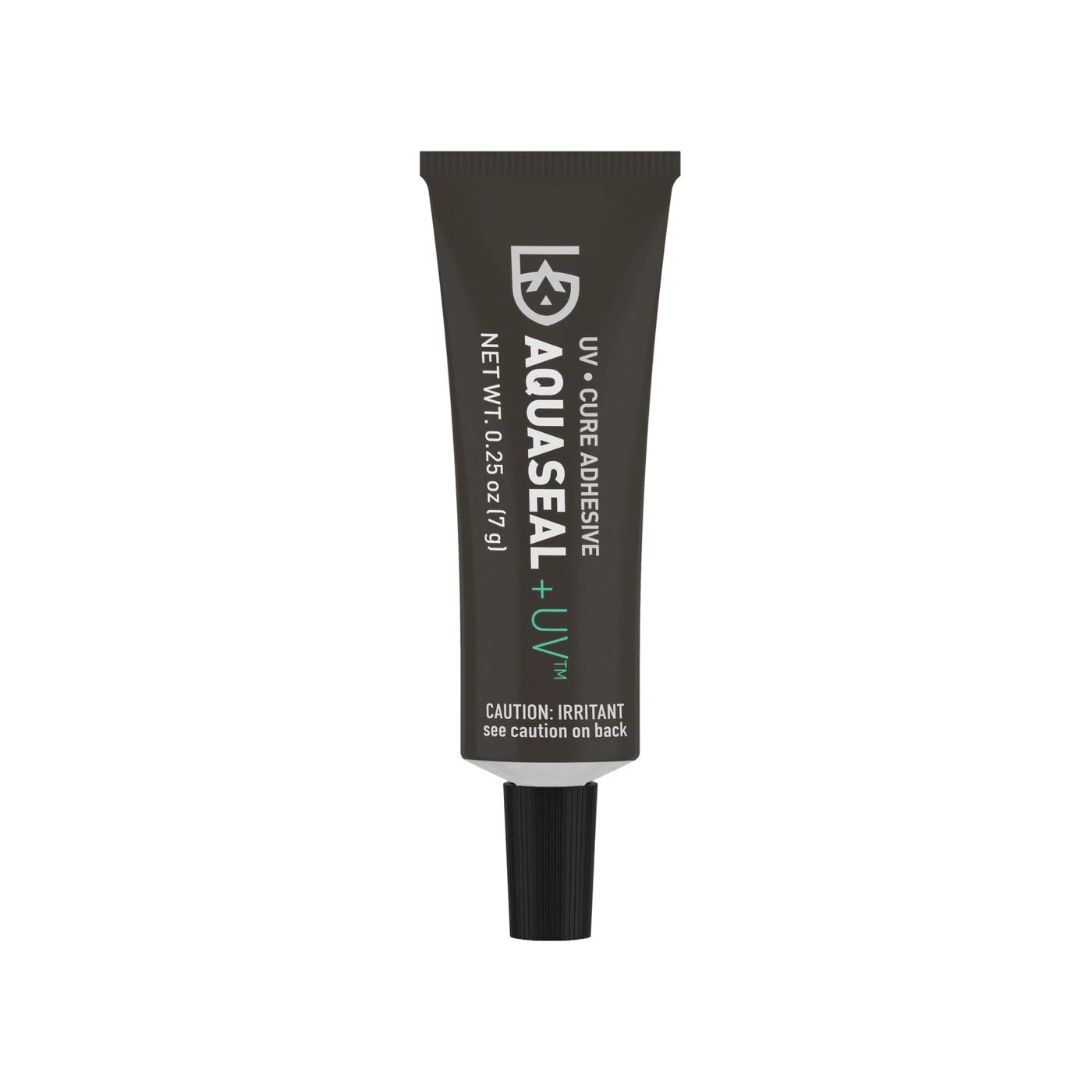 When gear fails in the outdoors, use Aquaseal UV. This quick curing adhesive dries instantly when exposed to sunlight and ultraviolet light. This small, but mighty 0.25 oz of adhesive even works under cloudy skies. As a multipurpose formula, it’s ideal for all types of drysuit or wader repair – bonding directly to neoprene, nylon and GORE-TEX® fabrics. It’s also a useful adhesive for coating fly line knots, or as head cement for fly tying. For fast, stress-free field repairs, reach for Aquaseal UV. Instant & Fast – Dries in seconds when exposed to the sun or UV light Flexible – Glue cures to a seal that flexes with neoprene and other elastic gear Waterproof – Provides a water-tight seal to keep moisture out that won’t peel or crack over time Abrasion Resistant – Make long-lasting repairs that can withstand scrapes and scratches Dries Clear – Make barely noticeable repairs so waterproof gear keeps performing and looking good Specifications: Material: Acrylic-based, solvent-free Size: 0.25 oz Color: Clear Adheres To: neoprene, nylon, polyester, GORE-TEX fabric Cure Time: under 30 seconds with UV light Cure Method: UV light Application Temperature: -2° C to 49° C (28° F to 120° F) Use Temperature: -29° C – 65° C (-20° F to 150° F) Storage: store in cool, dry place Made in USA (10612)