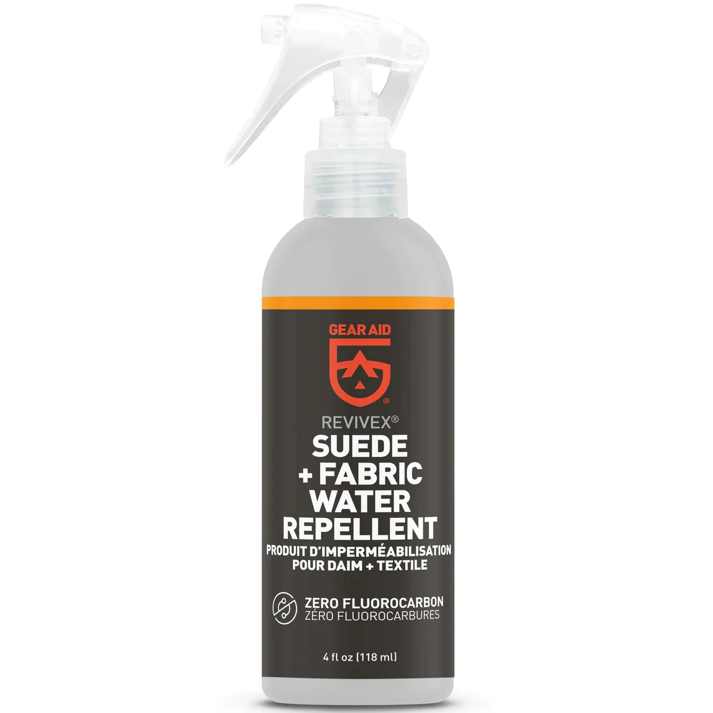 Gear Aid ReviveX Nubuc, Suede & Fabric Water Proofing When you need to waterproof hiking boots, protect suede shoes or weatherproof GORE-TEX® footwear, only one water repellent will do. ReviveX Nubuck & Suede Water Repellent by Gear Aid is the high-tech treatment for your high-tech footwear. It will safely waterproof nubuck, suede and waterproof-breathable boots and shoes to keep your feet looking good and feeling dry. When you’re enjoying the great outdoors, prevent your favorite hiking shoes and boots from getting wet, stained or haggard-looking. Just apply ReviveX Nubuck & Suede Water Repellent and allow to dry overnight. They’ll be shedding water in no time flat. Keep your kicks dry and stay outside longer with ReviveX. Water repellent spray safely protects boots and shoes Weatherproofs and prevents staining Ideal for use on nubuck and suede footwear Safe for waterproof-breathable footwear including GORE-TEX® and eVent® Made in USA (36270)