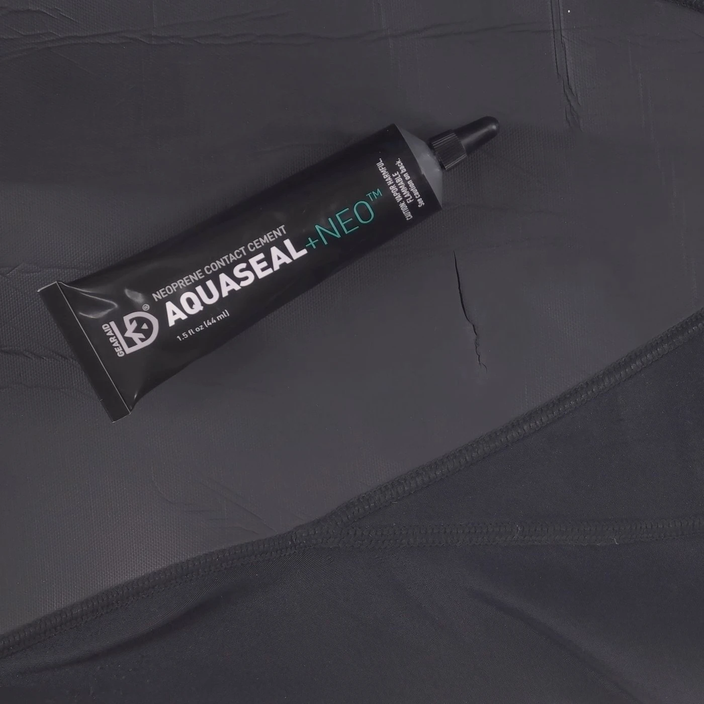 Wetsuit repair is simple and quick with Aquaseal NEO. Previously known as Seal Cement, this black contact cement is formulated to permanently bond with neoprene and other coated materials. With this flexible liquid adhesive, repairing neoprene gear can be done within half an hour. Apply to waterproof waders, gloves, booties, and spray skirts by the water. Also ideal for neoprene seat covers. Or re-seal a leaky gasket at home. When rips and tears happen, use this contact cement to repair stretchy, high-performance fabrics and protect it from abrasions. Before venturing out to that favorite fishing hole or dive spot, bring Aquaseal NEO along for unexpected repairs and save that expensive gear. Fast Acting – Dries in 20 minutes for fast in-field repairs to wetsuits, waders and more Durable – Available in 1.5 fl oz tube or 4 fl oz can, this tough adhesive bonds to neoprene, latex and rubber Flexible – Cures to an elastic rubber that stretches and bends with fabrics Abrasion resistant – Coat high-wear areas like knees and elbows to protect against abrasion Waterproof – Provides a water-tight seal to keep watersports gear performing no matter the activity Material: Heat-resistant contact cement Sizes: 1.5 oz (44ml) Color: Black Adheres To: Neoprene, rubber, latex, leather, and most fabrics Cure Time: 20 minutes Cure Method: Humidity Application Temperature: 60° to 80° F Use Temperature: -20° to 150°F Storage: store in cool, dry place Made in USA (14110)