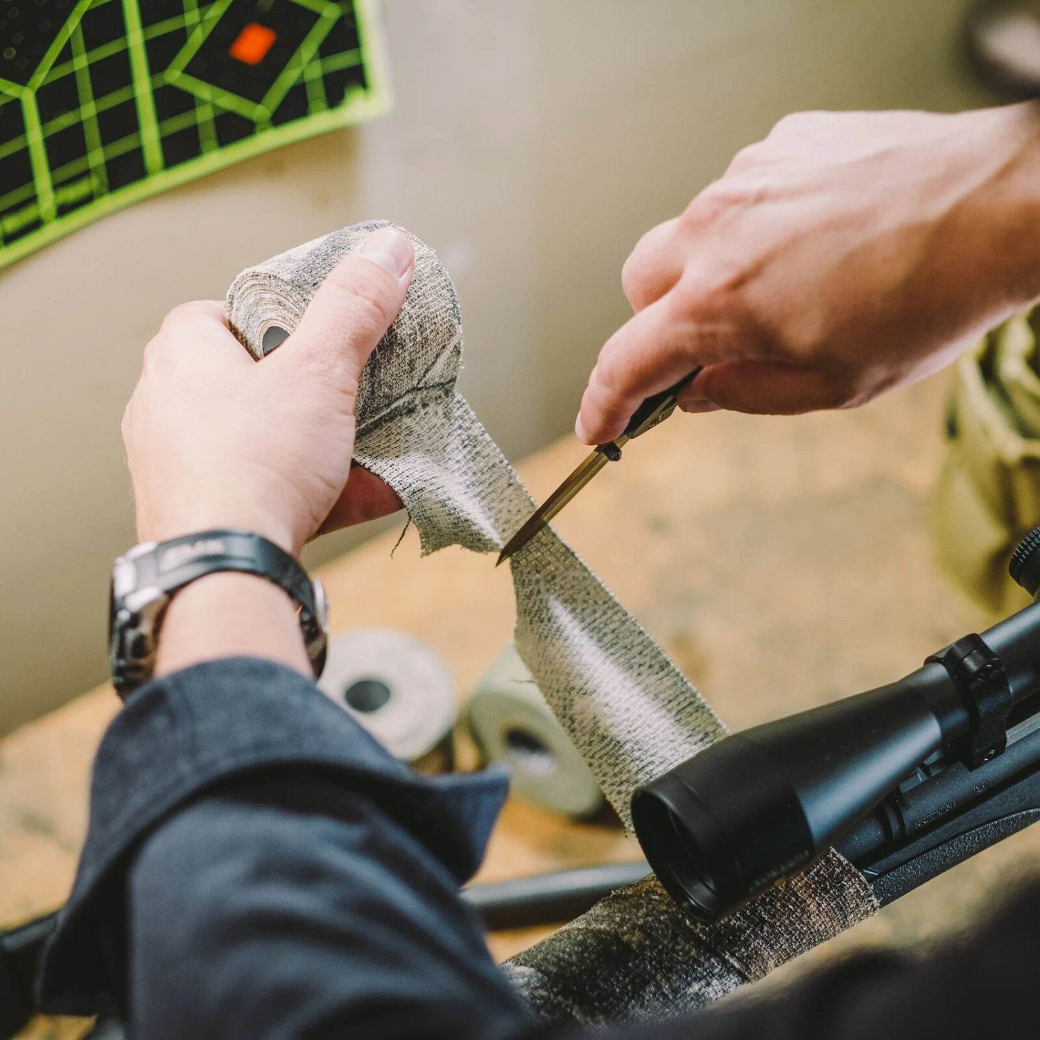 Gear Aid Camo Form Reusable Wrap Snow 5.1cm x 366cm Properly camouflage firearms and equipment without leaving behind a sticky residue with Camo Form® Reusable Fabric Wrap. This self-adhering, the elastic wrap is easy to apply and is removable. When it gets dirty or wet, simply remove, wash, let dry and reapply. Camo Form stretches and sticks to itself, conforming to any shape for a custom fit. It also protects and quiets clanking objects. Use it on guns, scopes, knives, tree stands, flashlights — whatever needs concealment in the field. Available in 11 traditional and digital camo patterns, Camo Form keeps gear and guns concealed, protected and ready for action. Features Protects – Conceals and quiets firearms and gear, while adding grip and insulation from hot and cold surfaces Field-Tested – The heavy-duty, self-adhering fabric wrap stays on during any mission or hunting trip; covers one standard rifle or shotgun Reusable – Cut to any size or adjust the wrap as often as needed; leaves no sticky residue Washable – Easily remove and clean when it gets dirty; once dry, reapply as needed Multipurpose – Camouflage guns and other tools used in the field; easily conforms to any shape Made in USA Specifications Dimensions: 5.1cm x 366cm Colour: Snow Made in USA (19701)