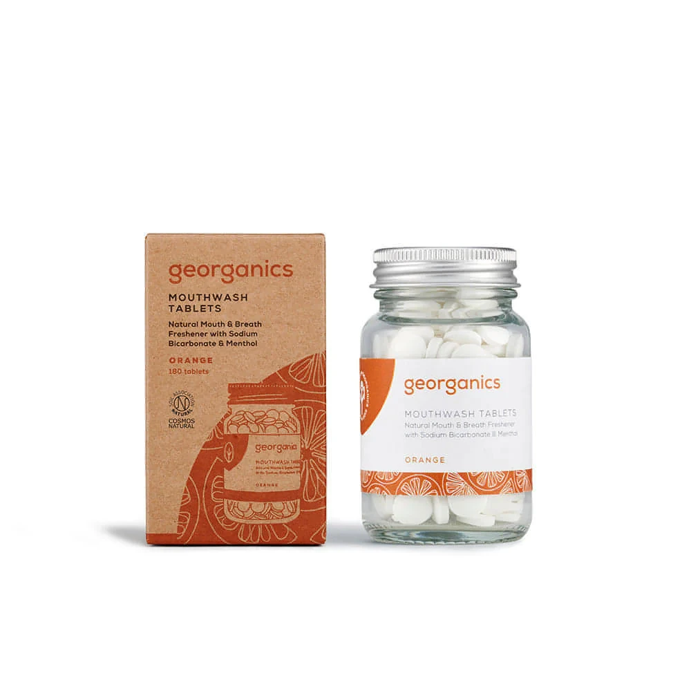 Georganics Mouthwash Tablets 180 Tablets Free from synthetic ingredients and colourants, these Mouthwash Tablets help you maintain optimal oral health and keep your breath fresh. They last 7 times longer than a 500ml bottle of conventional mouthwash and save up approx 14 plastic bottles from landfill in a year. Flavoured with organic Orange oil for its gentle citrus aroma and soothing properties. Features: Made in Britain Plastic Free 180 Tablets – 3 Month Supply Breath-freshening Formula With Refillable Dispenser Free from Fluoride, SLS & Glycerin Liquid-free Ideal For Travelling COSMOS Natural & Vegan Fresh Orange Flavour Specifications: Size: 180 Tablets Ingredients: Sodium Bicarbonate, Tartaric Acid, Citric Acid, Citrus Aurantium Dulcis Peel Oil, Menthol, Thymol, Limonene How to Use: Dissolve 1 tablet in 10ml of water. Gargle for at least 30 seconds. Spit out without rinsing. (77155)