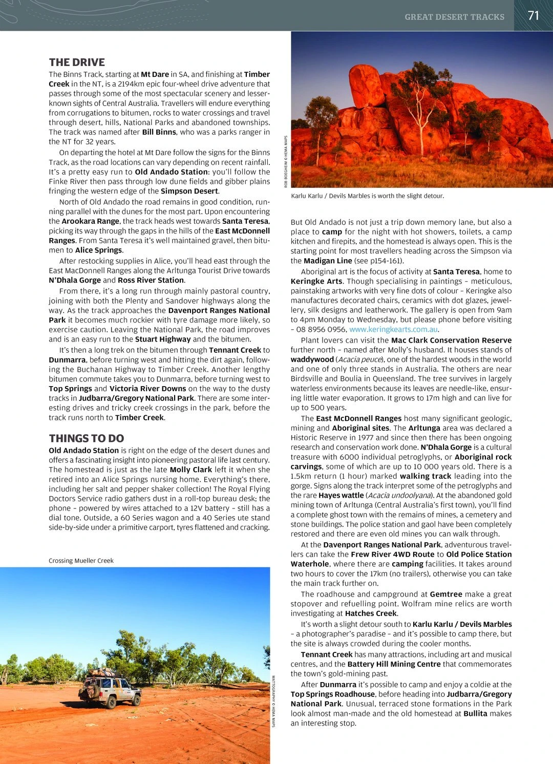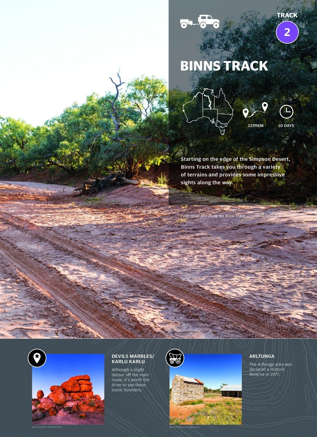 Great Desert Tracks Atlas and Guide (5th Edition) For over 20 years, Hema’s Map Patrol has been mapping the interior of Australia. In this comprehensive guide to traversing Australia’s desert regions, Hema takes you into the arid heart of Australia. Whether you are a desert lover, or just looking to tackle some of Australia’s favourite 4WD destinations, this informative guide is an indispensable companion to those tackling Australia’s great desert tracks. This edition includes handy track profiles showing elevations and distances as well as points of interest, camping areas and supply points in one easy-to-follow graphic. There’s also plenty of essential pre-trip reading on how to prepare for your trek, safety in the outback and driving techniques, making this the must-have guidebook for travelling Australia’s deserts. Key Features 25 4WD Trips featured Contains the complete set of Hema’s Great Desert Tracks maps Tracks coded by vehicle type with symbols showing towing suitability, GPS-surveyed roads and tracks that show fuel and provision availability Track descriptions include permit information and contact details Background information on geomorphology, major environments and ecosystems, and history Track profiles showing elevations and distances as well as POIs, camping areas and supply points Specifications Edition: 5th Publication Date: 14/09/18 Number of Pages: 336 Height: 297mm Width: 215mm Depth: 30mm Weight: 1.2kg (9781876413637)