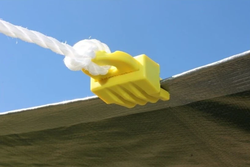 Temporary emergency support for securing tarps and privacy screens or repairing old tarps. Will you need an extra eyelet so you can secure an additional guyline? Or maybe you’ll need a replacement? This is the fastest and most reliable solution to create a solid and durable instant eyelet for backup and emergency for your tarp or awing. Simple to use and holds strong throughout any weather conditions! Perfect for repairs, securing tarps and privacy screens or extra support. Simply clip onto fabric, clasp tight, then feed the rope through. No hemming, hole punching or additional tools required. Vivid yellow colour for easy visibility. Manufactured in Australia Weight 120g (4 pack) (SHO38P)