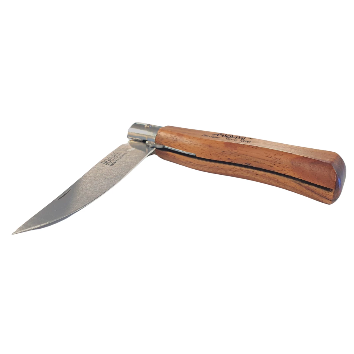 MAM 90mm Douro Pocket Knife w/ Auto Blade Lock The Douro pocket knife is the perfect companion for your daily cutting needs. Developed with 150 years of experience in the manufacture of knives Douro pocket knife features a timeless look and quality that is hard to find in today’s world. It is suited for a multitude of tasks from peeling fruit, opening boxes or as a general utility knife for your next camping trip. The Douro is a lightweight knife that sits comfortably in your pocket When in use the blade locks in place thanks to a patented inbuilt liner lock that will keep the blade secure until you are ready to close it. When locked into place the liner lock gives of a crisp clicking sound. Features: Made in Portugal 90mm Stainless Steel Blade – Rust Resistant Only 11cm Folded – Fits in your pocket! Hardwood Beech Handle – Giving the Knife a more comfortable grip and feel of quality a synthetic handle cannot achieve. Inbuilt Automatic Blade Lock – Simple push the lock sideways & fold your blade Specifications: Blade Material: Stainless Steel Handle Material: Hardwood Beech Overall Length: 20cm Blade Length: 9cm Length (Closed): 11cm Weight: 45g (MAM_2008)