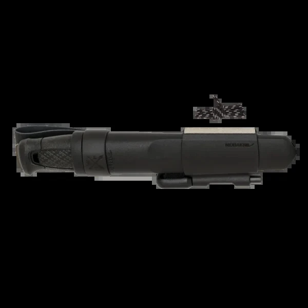 Morakniv Garberg with Survival Kit This Garberg BlackBlade with Survival Kit has everything a real bushcraft enthusiast needs, optimised and ready for sudden challenges. Designed to withstand the toughest challenges imaginable, a powerful full-tang knife for your next adventure. Attached to the polymer sheath comes a Survival Kit that has an integrated fire starter and a diamond sharpener. The 3.2 mm thick blade is made of high-quality carbon steel and has a Scandi grind edge profile that makes it easy to keep sharp. The spine is ground to a 90º sharp angle making it compatible with the fire starter. The knife has a DLC-coating that is not just aesthetically pleasing but also resistant to corrosion and scratching. The product is also equipped with a reflex paracord that can be attached to the fire starter. Manufactured in Mora, Sweden it’s the mot robust knife they’ve ever made. Features Extremely Strong, a true Bushcraft Knife Fire Steel Compatible – This knife has a ground spine. The blade hasn’t been polished/buffed and the spine corners are sharp, which make knives with this grinding excellent for use with a fire starter. High Carbon Steel with a Scandi Grind profile that makes it easy to keep sharp DLC Coating Full Tang Thick Blade Integrated Diamond Sharpener Comes with Fire Starter Detachable Survival Kit Symmetrical Sheath & Handle with reflective Paracord Made in Sweden Specifications Colour: Black Steel Type: 1095 Carbon Steel Blade Length: 109 mm Blade Thickness: 3.2 mm Fire Steel Compatible: Yes Knife Length: 229 mm Handle Material: Polyamide Total Length: 250 mm Net Weight: 170g (247.3 g with sheath) Made in Sweden (13915)
