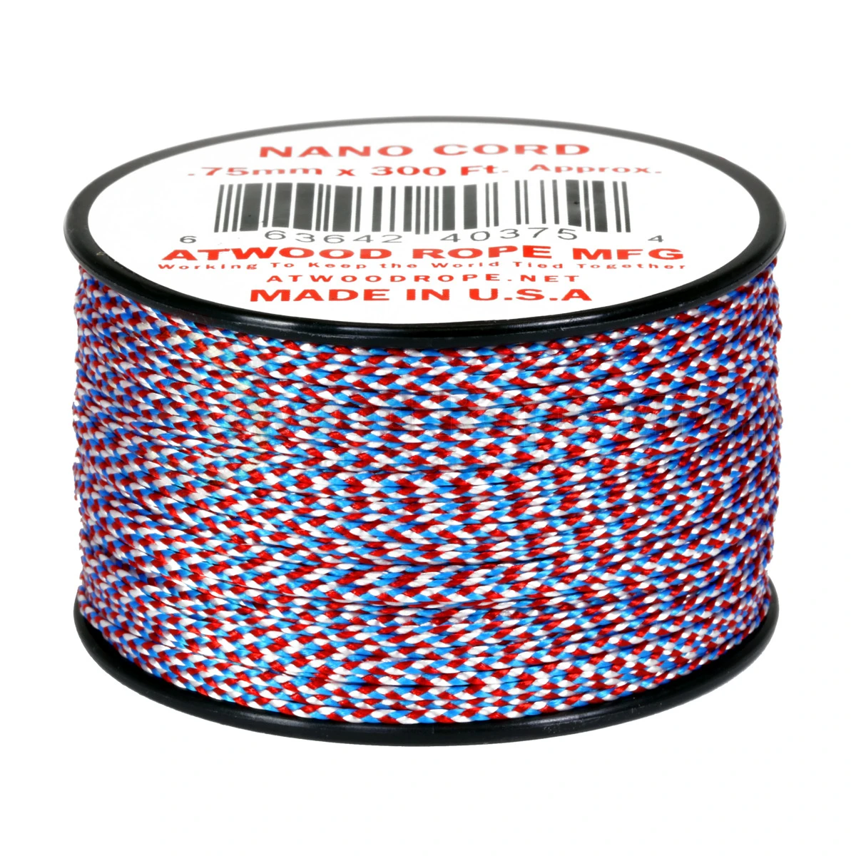 p.p1 {margin: 0.0px 0.0px 0.0px 0.0px; font: 11.0px ‘Helvetica Neue’; color: #000000} span.s1 {font-kerning: none} This rope is even smaller than micro cord and still 36 lbs test, is a very versatile product. This cord is perfect for intricate jewelry makers, crafters, macrame artists etc. Great for bracelets, lanyards, and key chains. Used for fishing line, handle wraps, wind chimes / dream catchers, beading etc. Great for backpacks and emergency kits. This rope comes on a small reusable plastic spool. Specifications: – Colour: Liberty – Spool Length: 91.5 metres / 300ft – Rope Diameter – 1/32″ / .75mm – Tensile Strength – 36 lbs / 17 kg – Weight (oz/300ft approx) – 2.8oz / 80g per 300ft spool – Works in the Micro Cord Dispenser – Material – Polyester / Nylon – Lightweight & Strong – Color Will not run or bleed – UV, Rot, Mildew Resistant – Made In The USA (ARMNanoLiberty)