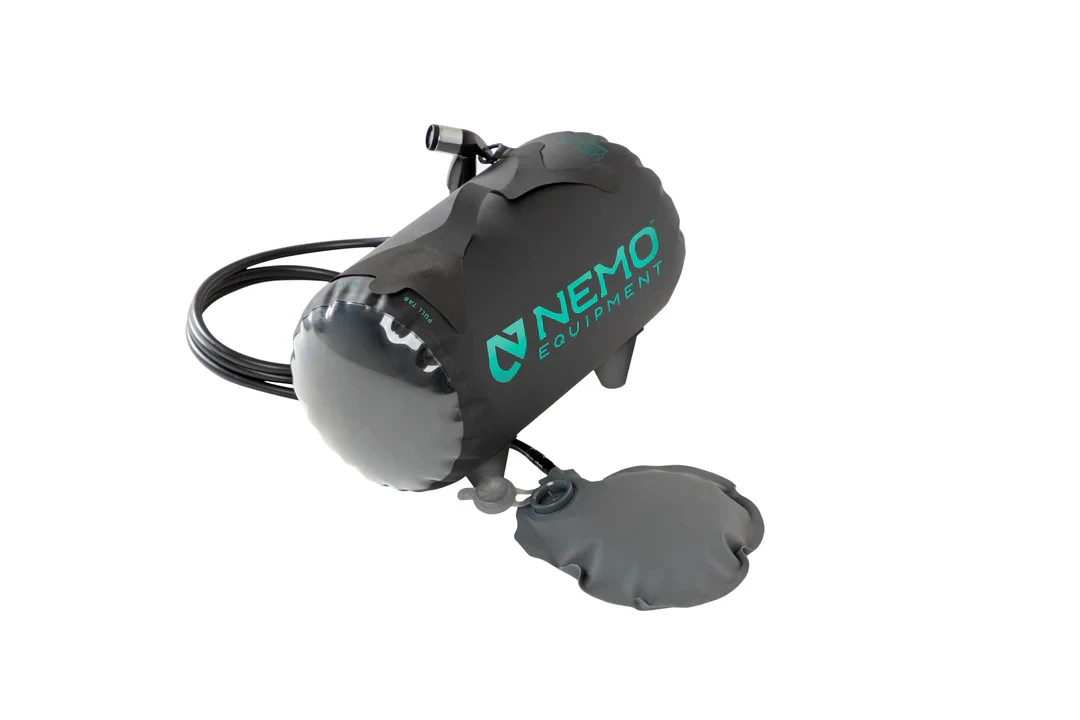 Nemo Helio Portable High-Pressure Shower Unlike gravity camp showers that need to be hung overhead and produce dismal water pressure, the award-winning Helio portable pressurized shower and sprayer rests on the ground and provides the pressure you need to wash hair, do the dishes, rinse off gear, water your plants, or wash the dog. You can quickly and easily pressurize the 11L tank with a foot pump — and with occasional pumps, you can keep it fully pressurized for 5–7 minutes of strong, continuous spray. The tank cannot be over-inflated. Set the black tank in the sun to warm up gradually, or fill it directly with hot water for a warm shower. Refill Helio anywhere, even without a hose. The 2m hose is long enough to hold it overhead for a shower, or to reach all angles of dirty gear, muddy paws, or salty wetsuits. Features: Generous 11 L Capacity – 2m Neoprene Sprayer Hose is long enough to hold overhead for a shower No Need to Hang – Sits securely on the ground and is pressurized by the foot pump Refill Anywhere – No Hose required 5-7 Minutes of continuous, steady water pressure Enjoy a Warm Shower – Warm in the Sun or fill directly with hot water for a hot shower or wash dishes Compact Ventilated Carrying Case stows hose, nozzle and pump neatly between use Specifications: Capacity: 11L Dimensions Packed: 21cm (Diameter), 14cm (Height) Colour: Black / Dark Verglas Dimensions: 24cm x 42cm Packed Weight: 605g (NEM00263)