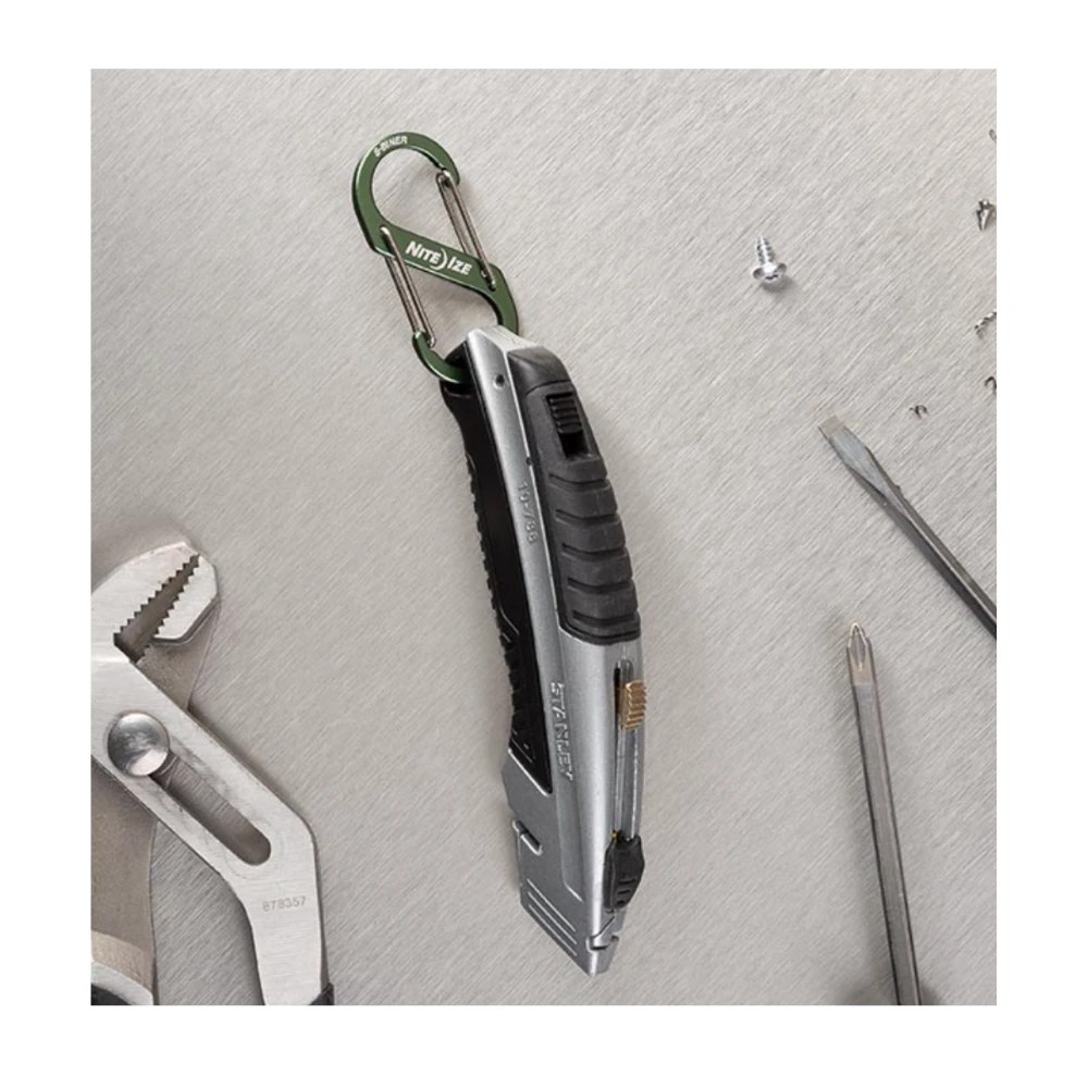 Nite-Ize S-Biner Dual Carabiner Aluminium 3 Pack The iconic S-Biner design allows quick and easy attachment using its unique double-gated design. The lightweight and colourful aluminium body with stainless steel gates are available in a variety of sizes, creating a perfect way to hold, secure and connect everything from keys to water bottles to gear. Solid aluminum construction Secure stainless steel wire gates Lightweight and strong Size # 2: Colour: Orange Dimensions: .9″ x 2″ x .4″ | 23mm x 50mm x 10mm Weight: .1oz | 4g Size # 3: Colour: Moss Green Dimensions: 1.2″ x 2.7″ x .4″ | 31mm x 68mm x 11mm Weight: .3oz | 9g Size # 4: Colour: Light Blue Dimensions: 1.7″ x 3.6″ x .6″ | 42mm x 91mm x 14mm Weight: .7oz | 19g WARNING: Not for use where disengagement could result in bodily injury or property damage. Not for climbing. (SBA234-A2-R6)