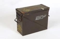 PA-120 40mm Metal Ammo Box Military Surplus These ex-military ammo boxes are well built and great for general storage. As they are genuine military and in used condition they have a nice patina. They include a handle and rubber gasket to keep the elements out. Features: Genuine Ex-military Weatherproof Gasket Stackable Specifications Dimensions: 470mm x 210mm x 380mm Weight: 8.9 Please note due to the weight/size of this item shipping charges apply. (AM010)