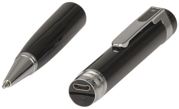 Covert 1080p Pen Camera Looks just like a regular pen but it has a tiny camera and microphone just above the pen clip to discreetly capture high-definition video, audio or still photos. The files save to a microSD card, which you can later transfer onto your computer. Ideal for taking electronic notes at your next meeting or protecting your legal rights by capturing a video or audio record of an event. Photos and recordings are triggered using the push button located on the top of the pen, and the internal Li-Po battery provides up to 70 minutes of recording. Connect to a USB port to charge. Features: Audio, Photo or Video Recording Only weighs 40g! Lasts up to 70mins Able to Insert your own MicroSD Card Rechargeable Specifications: Type of Memory: Micro SD Card (Not Included) Length: 145mm Diameter: 13mm Weight: 40g Run time: 70min Photo Resolution: 4MP Recording modes: Photo, Video, Audio Video Format: AVI Picture Modes: JPG (QC8202)