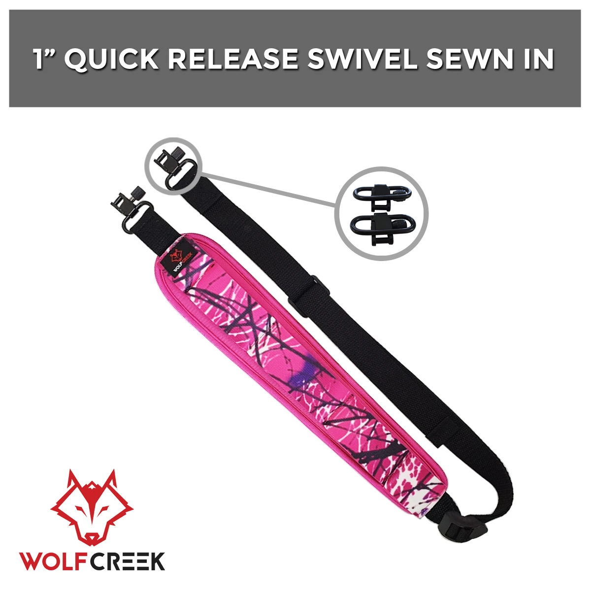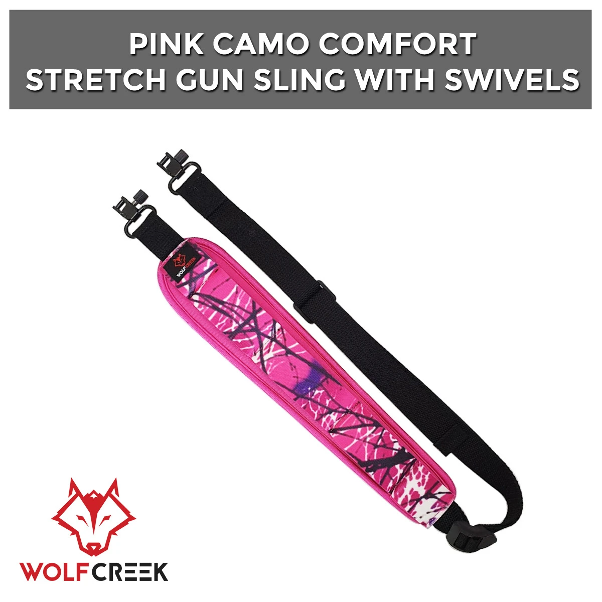 Wolf Creek Pink Camo Comfort Stretch Gun Sling with Swivels Wolf Creek Anti-Slip Camo Gun Sling is Soft & flexible with 8mm Thick Neoprene. The Anti-slip Backing keeps the sling firmly in place providing a comfortable way to transport your firearm. Customise your gear with the Pink Camo Strap. Due to its design it is lightweight, making it a great choice to reduce fatigue while carrying your firearm. Features: 8mm Thick Neoprene Pink Camo Print Anti-Slip Backing Lightweight Durable 25mm Nylon Webbing 1″ Quick Release Swivels Sewn-in Specifications Weight: 130 grams Colour: Pink Camo (WC-8041)