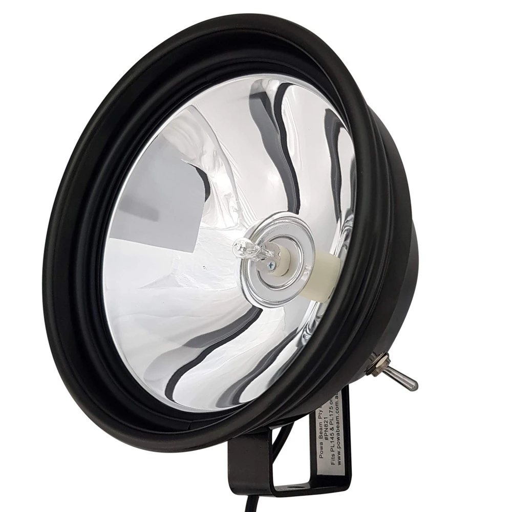 Powa Beam 175mm/7″ QH 100W Spotlight with Bracket *Please note there is a 4-6 week delay. These are Australian made and there is currently and backlog of orders. The Australian Made Powa Beam 7” Spotlight is designed to be used as a searchlight from your vehicle or boat. It connects directly to your battery to ensure you have uninterrupted light all night long. It is the top-selling size and most popular among farmers and recreation shooters & fishers. The Halogen bulb provides better colour rendition and clarity than LED and is less likely to spook or startle wildlife as easily as LED spotlights can. The high-quality highly polished smooth reflector provides long-range distance. Specifications: Reflector Size – 175mm (7″) (Diameter) Casing Size – 195mm (Diameter) x 140mm (Depth) Voltage – 12V Power – 100W Light Type – Quartz Halogen (QH) Beam Type – Adjustable from Spot to Spread Base – Steel Bracket with 9mm Mounting Hole Main Components for Modifications & Repairs: Bulb: 12V 100W Vertical Filament Lens: Toughened Glass Reflector: Heat Resistant Alloy Reflector Case: Anodized Alloy Base: Powder Coated Custom Metal Bracket Package Includes: 1x Australian Made Powa Beam 7” 100W QH Spotlight 3.5m Cable Electrical Connectors Battery Clips Powa Beam Bumper Sticker (PL175WB)
