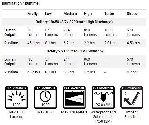 PowerTac E5R-G4 1800 Lumen Rechargeable LED Flashlight The E5R-G4 is the newest generation of Powertac’s workhorse E5 series. It is the perfect light for EDC, police or military duty. The 1800 lumen beam pattern is tight and gives an impressive 320 meters of throw. The magentic charging sytem allows for quick connection for recharging even in low light or with gloves. The E5R-G4 can be a mounted weapons light with the optional Long Gun Kit Upgrade. Features: Massive 1800 Lumens Small, Compact yet extremely durable in harsh environments Huge 320 metres of throw Cree XHP35 White LED Machined Aircraft Aluminium with anit-slip knurling IPX8 Waterproof and Impact resistant to 2 metres Magnetic Charge cable with indicator lights Up to 45 days runtime Specifications: LED Type: Cree XHP35 White LED Battery: (2) CR123A or (1) 18650 High Discharge Rechargeable Li-ion (included) Length: 133.2 mm Bezel Diameter: 25.4 mm Body Diameter: 23 mm Weight: 76g (without battery) Light Output Modes: 1800, 850, 214, 57 or 0.33 (Firefly) lumens + Strobe (670 Lumens) Run Time: 2.01 hours to 45 days Charging Time: 4-6 hours Range: 320 metres Focus Type: Fixed On/Off: Pushbutton, Tail-Cap Material: Anodized aluminum Package Includes: 1x Powertac E5R-G4 Flashlight 1x Powertac 18650 3200mAh Rechargeable Battery 1x Magnetic USB Charge Cable 1x Engineered Holster Spare O-Rings Lanyard Instruction Manual (E5R-G4)