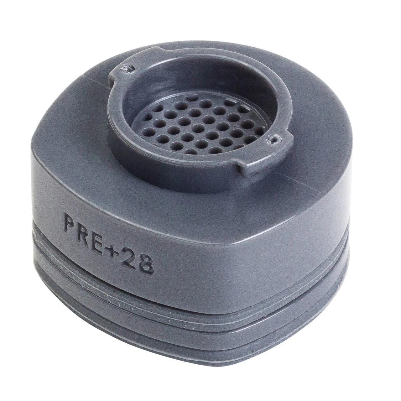 The PRE+28 Connector is the pre-filter to your MUV system. It allows you to connect the Hose Adapter or a soda/water bottle to your filter. It comes with a rubber end cap to keep your filter safe while in transit, a plastic strainer to keep large debris out of your filter, and a pre-filter felt which keeps smaller particulate out of your filter. The PRE+28 Connector has male connection points and is always attached the bottom, female end, of the MUV water filters. Connection point for the Hose Adapter Pre-threaded to attach to a plastic water bottle Rubber gasket keep debris out of the filter when not in use Comes with a pre-filter felt included (REN-M-13)