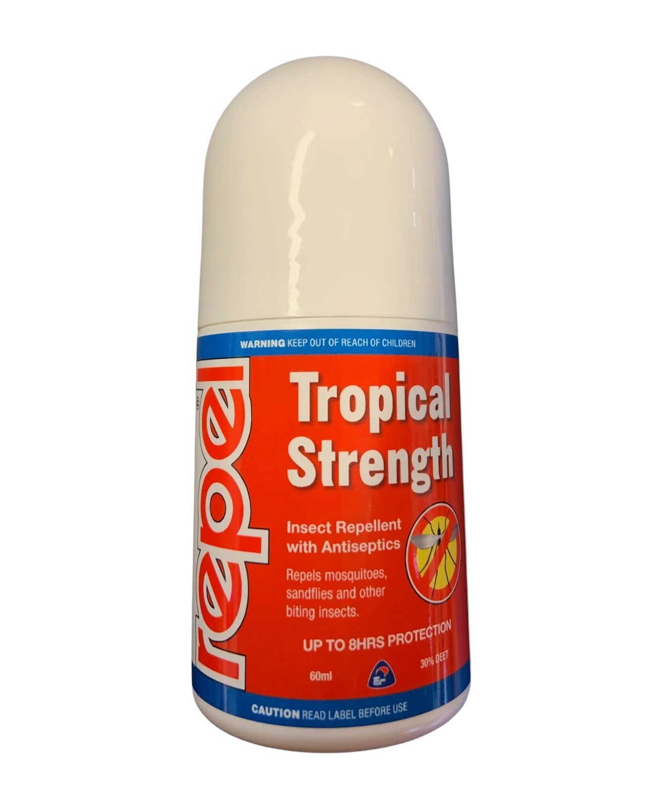 Repel Roll-On 30% Deet 60ml Tropical Strength Repel Tropical Strength is an optimal strength personal insect repellent containing 30% DEET and complementary antiseptics. Repel Tropical Strength will safely and effectively repel mosquitoes, sandflies, fleas, biting flies, ticks and other blood-sucking insects for 6-8hrs before the need to reapply. Choose Repel Tropical Strength to guard against Dengue Fever, Malaria, West Nile Fever and other diseases transmitted by the bite of infected blood-sucking and biting insects Features: Repels mosquitoes, sandflies, and other biting insects 30% Deet Tropical Strength Protects from 6-8hrs Specifications: Size: 60ml Made in New Zealand (017369)