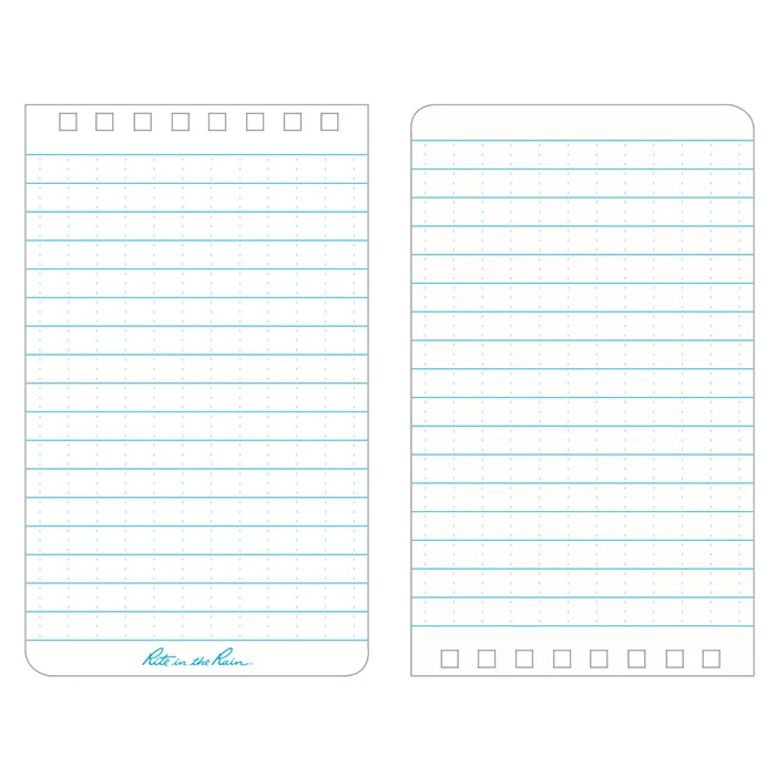Ideal for: Emergency Services Camping / Hiking Emergency Kits Tactical The Global Standard for Tactical coloured notebooks. Rite in the Rain’s 3″ x 5″ Top-Spiral Notebook range is small enough to fit comfortably in your pocket and tough enough to survive any of Mother Nature’s onslaughts. This scrappy pocket notebook will survive sweat, rain, mud, snow, oil, grease, and the wear-and-tear of daily use in your pocket. Impact-resistant Wire-O binding won’t lose its shape in your back pocket, and a PolyDura cover defends your notes from scratches and stains. Discretely sophisticated with its Yellow Polydura Cover and white tinted paper, each book contains 100 pages (50 sheets). With the Universal Pattern you can use this text for notes and scaled drawings. This is designed to be easy on the eyes, delivering the reliability you have come to expect from Rite in the Rain. Includes metric and imperial rulers on the back cover. Features: Standard 3×5 Rite in the Rain size For use with all Rite in the Rain Mechanical Pencils or Pens, Wax Markers & Crayons Wood based paper that won’t be affected when wet Made in the USA Specifications: Cover Color: Yellow Paper Color: White Binding: Top Spiral Cover Material: Polydura Number of Pages: 100 (RITR-135)