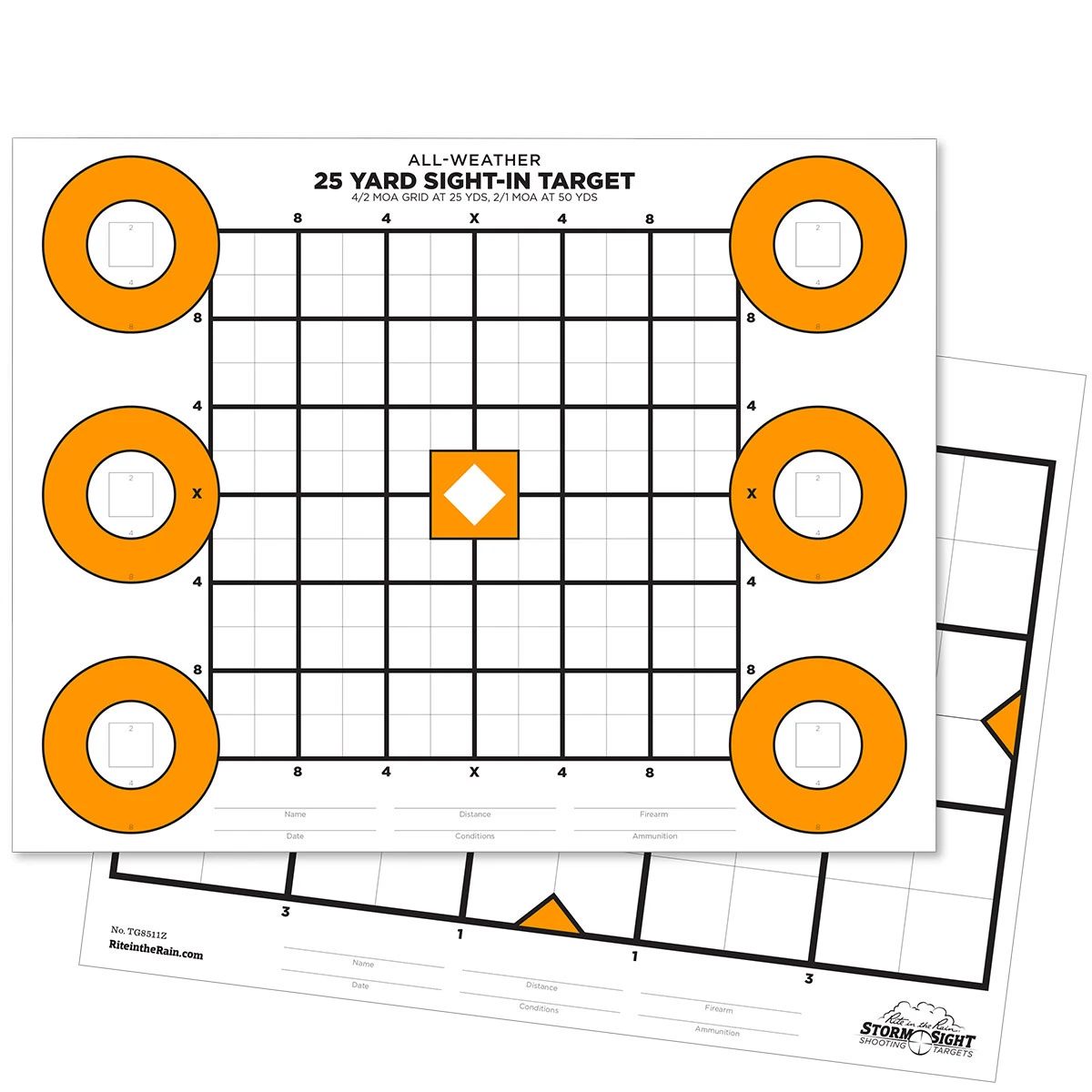 Rite In The Rain Zeroing Target 25 Sheet – 2 Sided White/Orange