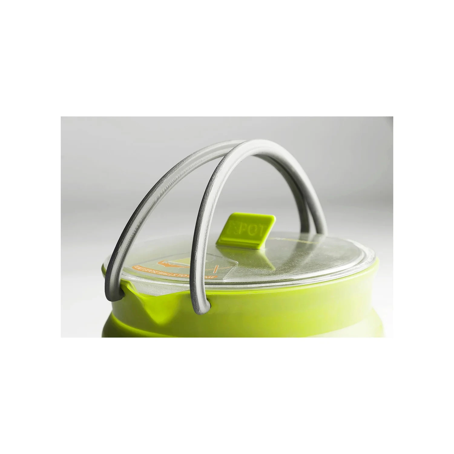 Sea To Summit X Pot Kettle 1.3L The perfect all-in-one flat-pack solution for fast and light adventures, the X-Pot Kettle utilizes the same award-winning innovative, space-saving and functional features as the other products in the X-Pot series. The collapsible food-grade silicone sidewalls allow it to pack flat for compact storage, while the hard anodized aluminium base conducts heat well, making it perfect for slow simmering or fast boiling. Its clear Tritan® lid provides easy viewing of contents, while the built-in spout and double glass-reinforced nylon 66 handles make pouring also a breeze. The 1.3L size is ideal for boiling water for your morning brew or small meals like oatmeal or soup, while the more generous 2L size can be used as an all-rounder cooking pot. Features: BPA free, food grade, heat-resistant silicone. Hard anodised aluminium base conducts heat really well for outdoor gourmet cooking. Durable, translucent pot lid shortens boil time – no need to lift the lid to check the boil. Two glass-reinforced nylon 66 handles support the upper rim and improve control when pouring. Measurements moulded into the sidewall. A silicone strap secures the lid and handles during transport. Nests with other X-Series products Specifications: Colours: Sand or Lime (Please Select Colour) Weight: 186g Material: BPA free, food grade, heat resistant silicone and hard anodized 6063-T6 aluminum base (AXKET1.3_P)