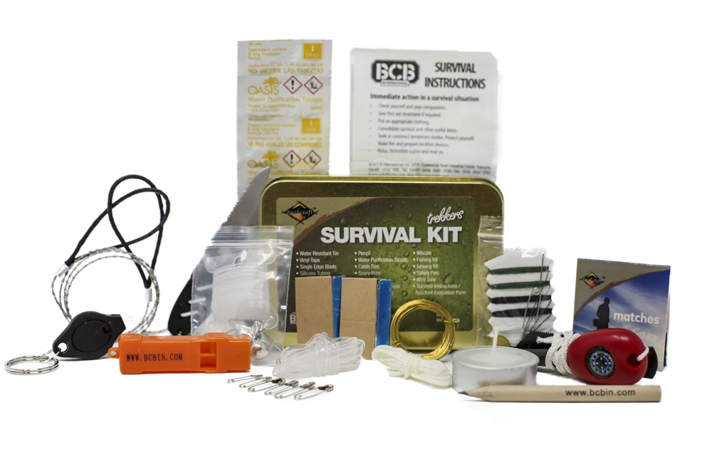 Trekkers Bush Survival Kit The Trekkers Bush Survival Kit has been created and put together using years of bushcraft outdoor knowledge. Containing just about every single tool needed to survive in the outdoors. The kit is supplied in a weatherproof metal tin. Ideal for unexpected survival situations but it also makes a great gift. Contents: – Strong self-locking Penknife – Water Purification Tablets – Fire Starter Flint – Flint Striker with Compass – Sewing Repair Kit – Single Edge Blade – Nylon Cord – Silicon Tubing – Survival instructions – Vinyl Tape – Safety Matches – Gold Wire Animal Snare 3.5 metres (12ft) – Mini Fishing Kit (fishing line, 4 x swivels, 4 x weights, 4 x hooks) – Safety Pins – Cable Tie – Accident Evaluation Form – Pencil – Button sized Compass – LED torch – Night Light Candle – An extremely loud Whistle – Wire Bush Saw All packed into it’s own weatherproof metal tin. Specifications: Dimensions: 122mm x 87mm x 36mm Weight: 209g Made in Great Britain (CK015L)