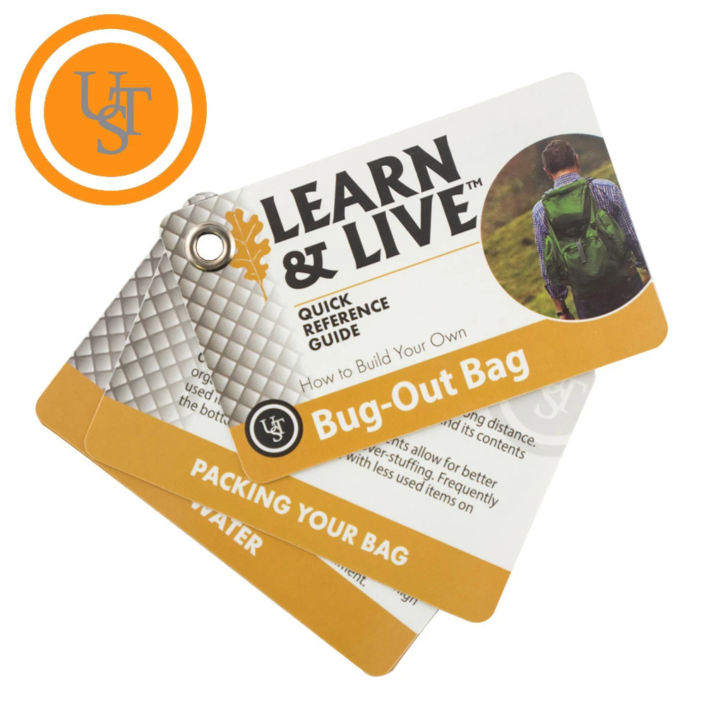 These cards are part of the Learn & Live Card Collection. The Bug Out Bag cards feature a wealth of information on how and what to include in an emergency pack, plus are waterproof and durable for outdoor referencing. Ten Informative Cards Each Card Outlines Essential Tips to Consider When Building a Bug-Out Bag Covers Everything from Food to First Aid Pocket-Sized to Fit Anywhere Laminated to be Waterproof and Durable Attached with a Grommet Part of UST’s Learn & Live Collection Dimensions: 89mm x 57mm x 5mm Weight: 17g (U-02748)