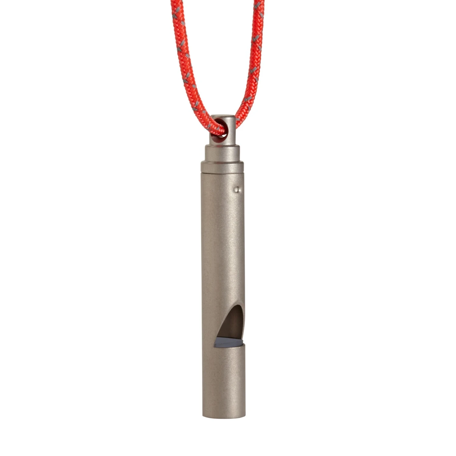 Vargo Titanium Emergency Whistle Vargo Titanium Emergency Whistle built extra strong with the strength and toughness of titanium. Titanium pealess design won’t break or fail where other whistles will. And because it weighs just 1/10th of an ounce it’s a great addition to any pack or emergency kit. Ideal for teachers, scouts, hiking & camping, emergency. Features: 100+ decibel level whistle. VERY LOUD Titanium pealess design won’t break or fail where other whistles will Extremely lightweight to provide maximum peace of mind as minimally as possible Includes a handy neck lanyard with reflective weave Specifications: Whistle weight: 0.1 ounces (2.8 grams) Whistle length: 2.2 inches (56 mm) Whistle diameter: 0.3 inches (8 mm) Cord length: 30 inches (762 mm) Cord diameter: 2mm (T-416)