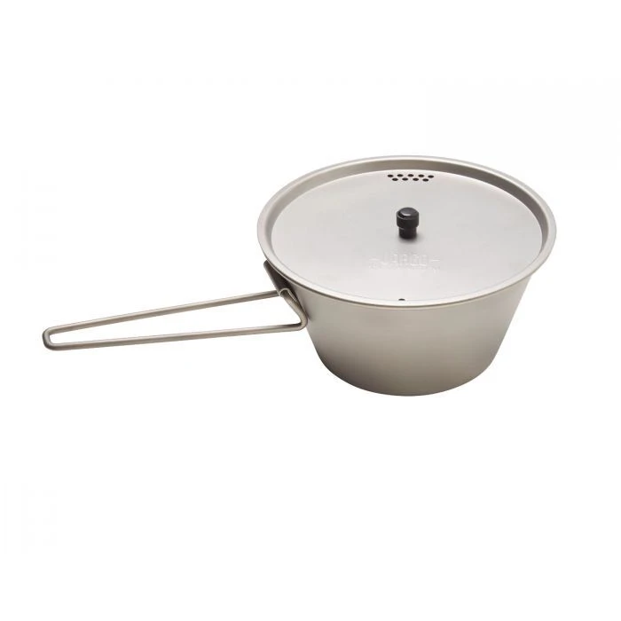 Vargo Titanium Sierra Magna 900ml With traditional sierra cup features in a larger bowl/pot combo and unique lid, this all-in-one unit is great for cooking, straining, and eating with ease. Slanted sides allow for quick clean-up and storage is simple, making the Sierra Magna a great addition to your ultralight cook system. Cook, drain, and eat your meal directly from this unique all-in-one pot/bowl combo with two rows of drain holes in the lid and a heat-resistant knob. With slanted walls and a folding handle, clean-up is quick and storage is simple. The Vargo Sierra Magna will deliver big results while keeping your pack as light as possible. Features: 900ml capacity Ultralight Titanium Construction Biocompatible Original Vargo Strainer Lid Graduated Measurements Foldaway Handle Mesh Storage Bag Specifications: Weight – 179g Top Diameter – 15.8 cm Bottom Diameter – 10.2 cm Height – 8 cm (T-310)