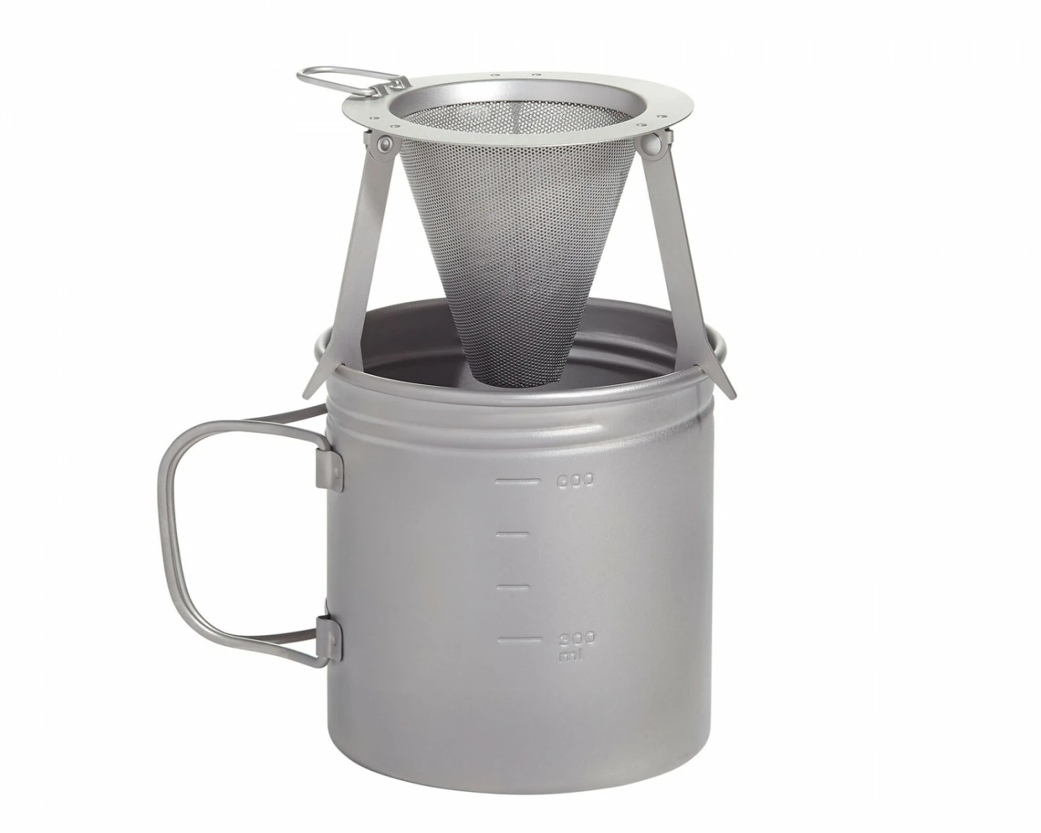 Don’t let anything come between you and a fresh cup of pure coffee. The Vargo Titanium Travel Coffee Filter is a solo pour-over coffee maker that easily fits and nests with your favorite mug. Made from pure titanium, it’s reusable, eco-friendly, and biocompatible so that the only thing you taste is delicious hot coffee in your cup whether at home or on the trail. The Titanium Travel Coffee Filter is your ticket to a simple, premium cup of coffee. No bothersome paper filters to add or multiple pieces to lose. When it comes to materials for coffee filters, nothing compares to titanium. Its non-corrosive and biocompatible properties means all you’ll ever taste is delicious, hot coffee in your cup. Make the perfect pourover either at home or on your next adventure with the Titanium Travel Coffee Filter. Features: 100% biocompatible titanium won’t leach chemicals, corrode, or impart any flavors for absolutely pure tasting coffee Double mesh construction offers strength and fine filtering Reusable and eco-friendly – no plastic cups or paper filters to waste Sturdy talon-style folding legs fit and nest with a wide variety of mugs Easy to clean and maintain for many years of use Folding handle for easy lifting without burning fingers Compact size and included mesh bag for easy storage Specifications: Weight: 1.27 ounces (36 grams) Dimensions: 3.5″D x 2.8″ (87 mm x 71 mm) (T-474)