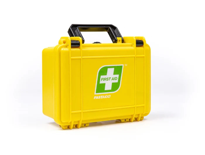 Waterproof IP67 First Aid Kit 134 Pieces Hard Case The FastAid Essentials IP67 Waterproof First Aid Kit is an ideal portable first aid kit for any environment exposed to the elements in marine, travel or recreational applications. This first aid kit is packed with essential TGA-registered quality hospital-grade contents suitable for treating a wide range of injuries including cuts and scrapes, wounds, splinters, eye injuries, resuscitation, and more. Unique colour-coded contents make locating the right item in an emergency faster and easier. Ultra-tough ABS plastic IP67-rated water and dust-proof case with integrated seal to protect your first aid contents from the elements. The compact case design makes this first aid kit ideal for stowing in small spaces on board boats, kayaks, and other watercraft. Also, a great companion for recreational vehicles and caravans Features Yellow IP67-rated waterproof case Ultra-tough ABS plastic construction TGA registered no. 128314 134 pieces ready to respond Ideal for marine, travel or recreational applications Specification Includes: 1 x Adhesive Plasters, Plastic, 72 x 19mm, 50pk 1 x Adhesive Plasters, Plastic, Assorted, 20pk 12 x Assorted Safety Pins 1 x Conforming Bandage, 5cm 1 x Conforming Bandage, 7.5cm 20 x Cotton Tip Applicators 5 x Disposable Splinter Probes 1 x Emergency First Aid Information Booklet 1 x Emergency Thermal Blanket 1 x Eye Pads, Non-Adherent 3 x Eye Wash, 15ml Ampoule 2 x Gauze Swabs, 7.5 x 7.5cm, 5pk 1 x Nitrile Disposable Gloves, Large Pair 1 x Non-Adherent Dressing, 10 x 7.5cm 1 x Non-Adherent Dressing, 5 x 5cm 1 x Paper Tape, Hypoallergenic, 1.25cm 1 x Plastic Bag, Resealable, Medium 1 x Resuscitation Face Shield, Disposable, With Valve 1 x Scissors, 9cm Steel 1 x Triangular Bandage, Disposable 1 x Tweezers, 9cm Steel 1 x Wound Dressing, No.13 2 x Wound Wipe, Alcohol Swab 4 x Wound Wipe, Non-sting Wipe Dimensions: 21.5 (W) x 16.5 (H) x 9.6 (D) cm Weight: 825g approx Case: Hard Case Case Colour: Yellow (P.FANCW20.U.V02)