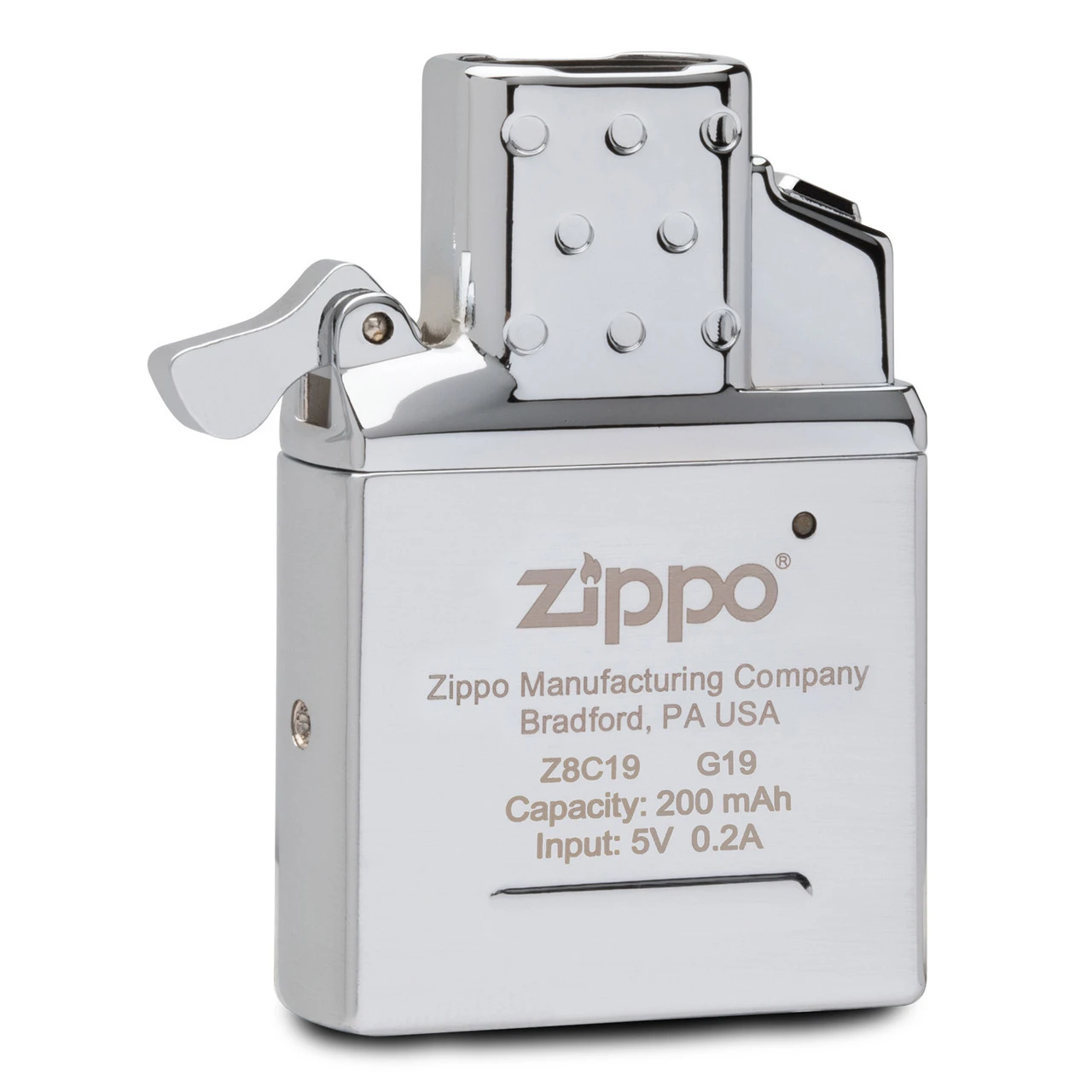 Zippo Rechargeable Arc Lighter Insert Single Take the customization process one step further with your choice of insert. Two powerful plasma beams cross to ignition for this insert. The double beam insert offers a windproof flame source that can easily be recharged and stamped with the best in class guarantee. Zippo’s new lighter insert collection, including this rechargeable arc option, is designed to perfectly fit any regular Zippo lighter case. Comes packaged in a gift box. Ideal for everyday carry and is the eco-friendly option for lighters. Features Provides a quick, easy ignition and resistance in the windiest conditions Rugged, durable and built to last; Reusable for long-lasting use Rechargeable via USB charging cable included Genuine Zippo Single Torch Insert; Push-button piezo ignition It fits all regular Zippo lighter cases – does not fit Slim or 1935 Replica cases Insert retains the famous satisfying Zippo “click” sound Double Beam Eco-friendly Specifications Battery: 200mAh Lithium-Ion Battery Includes: 1x Zippo Arc Lighter Insert, 1x Charging Cord Input: 5V 0.2A (99112)